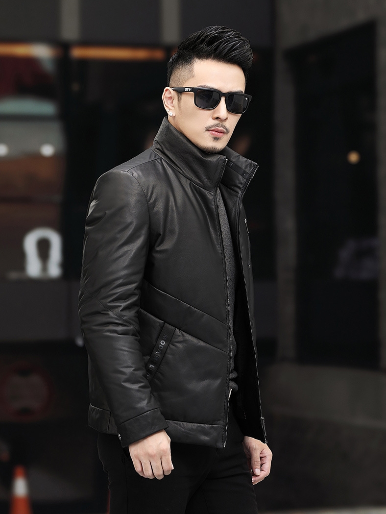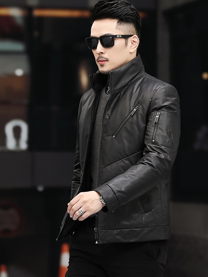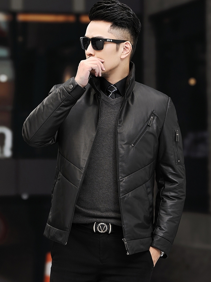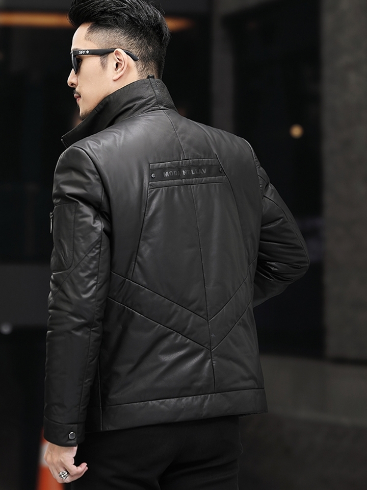 顶尖皮料制作,细腻质感,更显年轻化个性化;休闲立领柈装饰,提升男人魅力。