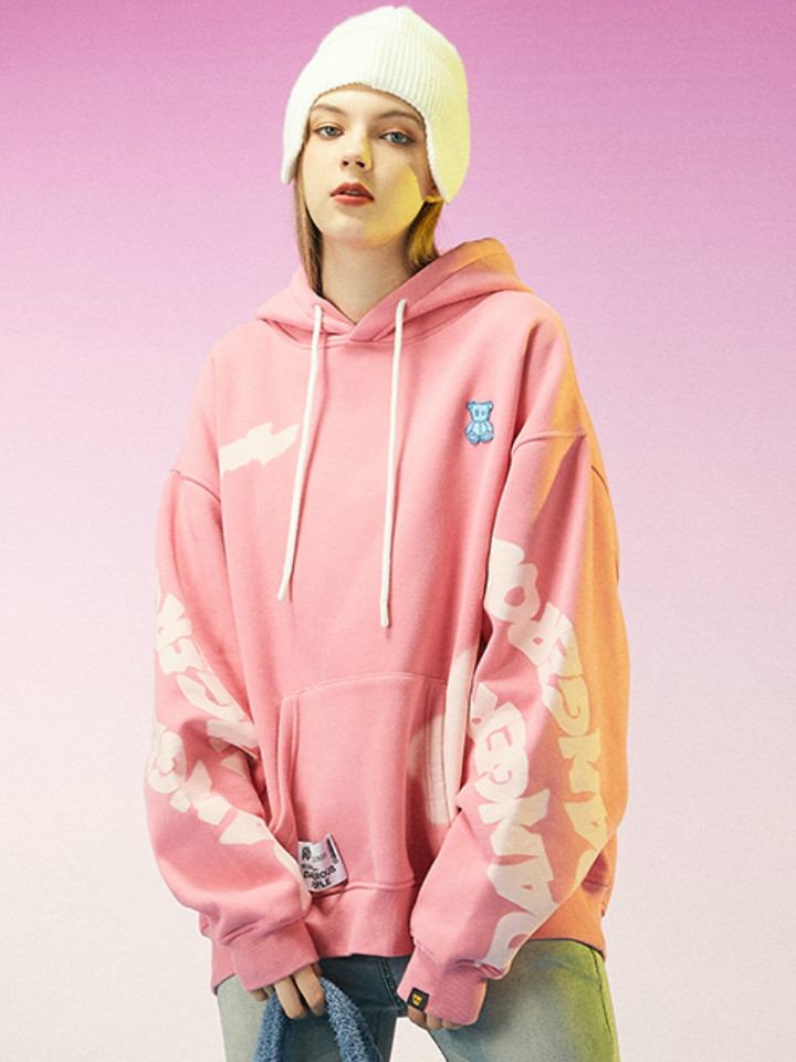 这款情侣印花加绒连帽卫衣,分别采用了粉色和蓝色调,穿着更显活泼与青春。柔软的面料,穿着更加舒适。