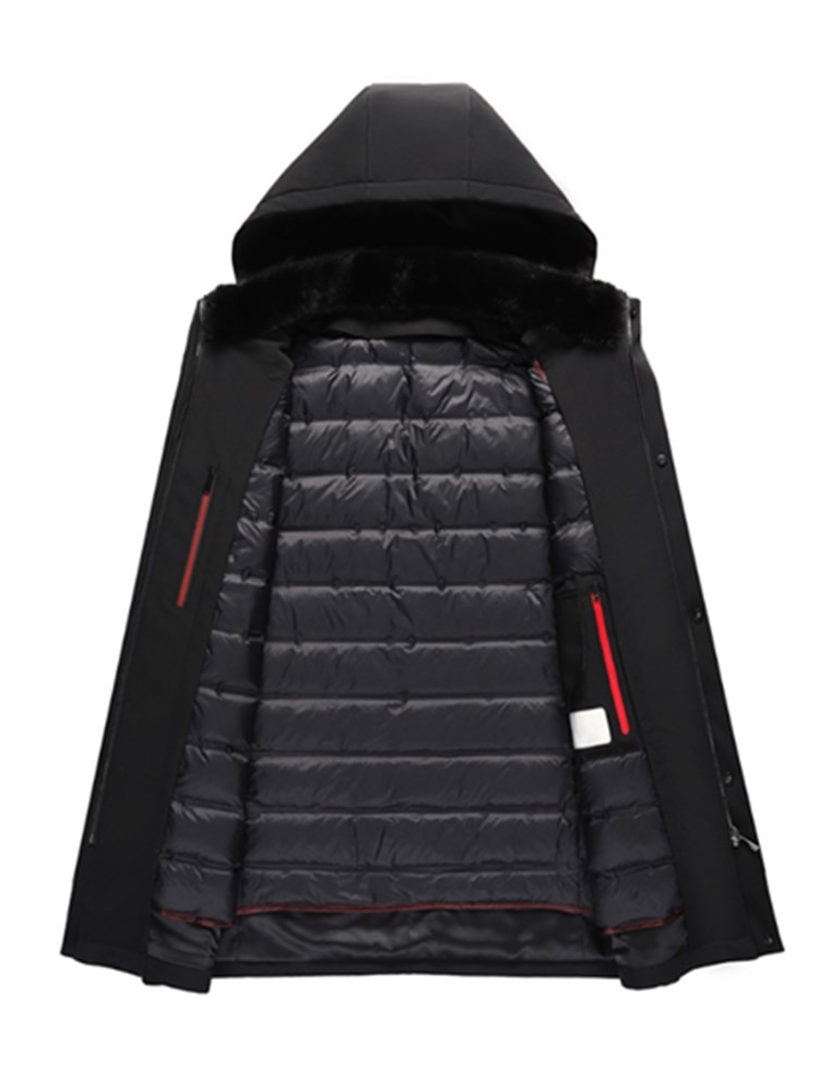 精选90%白鸭绒而成,能够起到很好的保暖效果,让爸爸在冬天再也感受不到寒冷的感觉。奢华的毛领设计,彰显时尚的同时,还兼具很好的保暖效果。连帽的设计,可以起到很好的保暖效果。