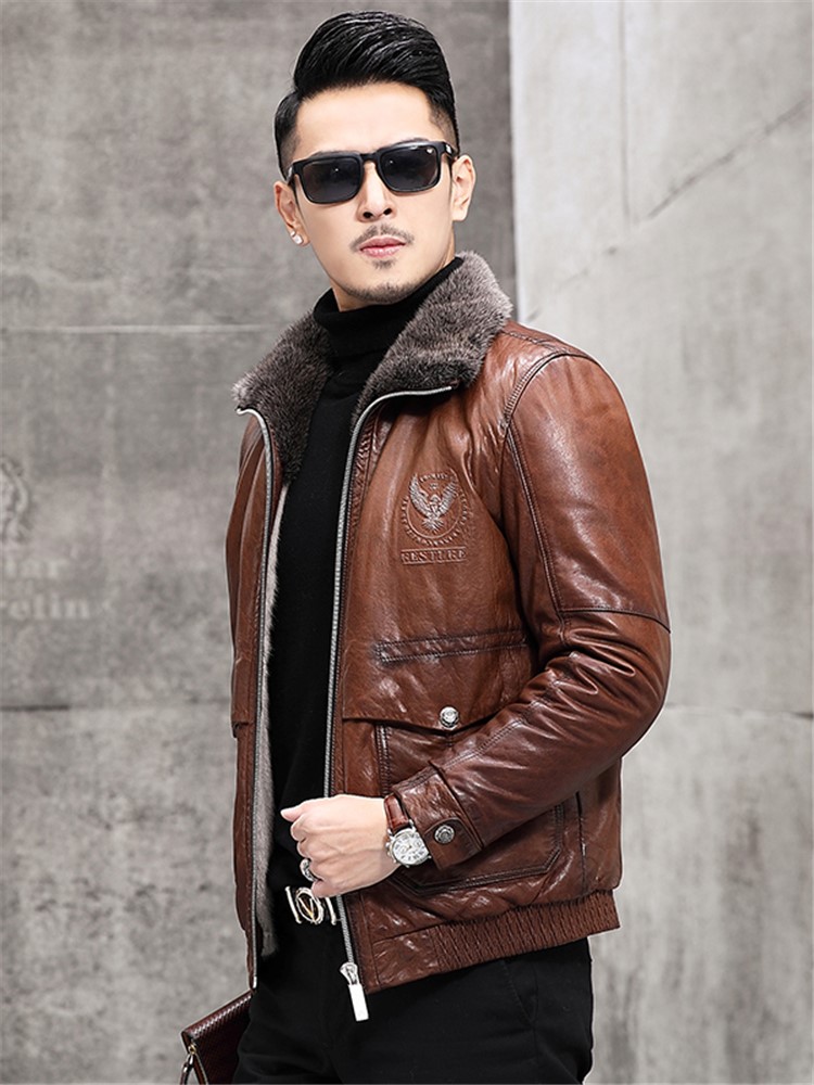皮衣是每一个型男都应该拥有的单品,一衣两穿的设计更是给造型带来更多的可能。上身内搭白色毛衣,轻松展现出型男的魅力。下身破洞牛仔裤搭配高帮鞋,将男人硬朗不羁与洒脱的个性展现的淋漓尽致。