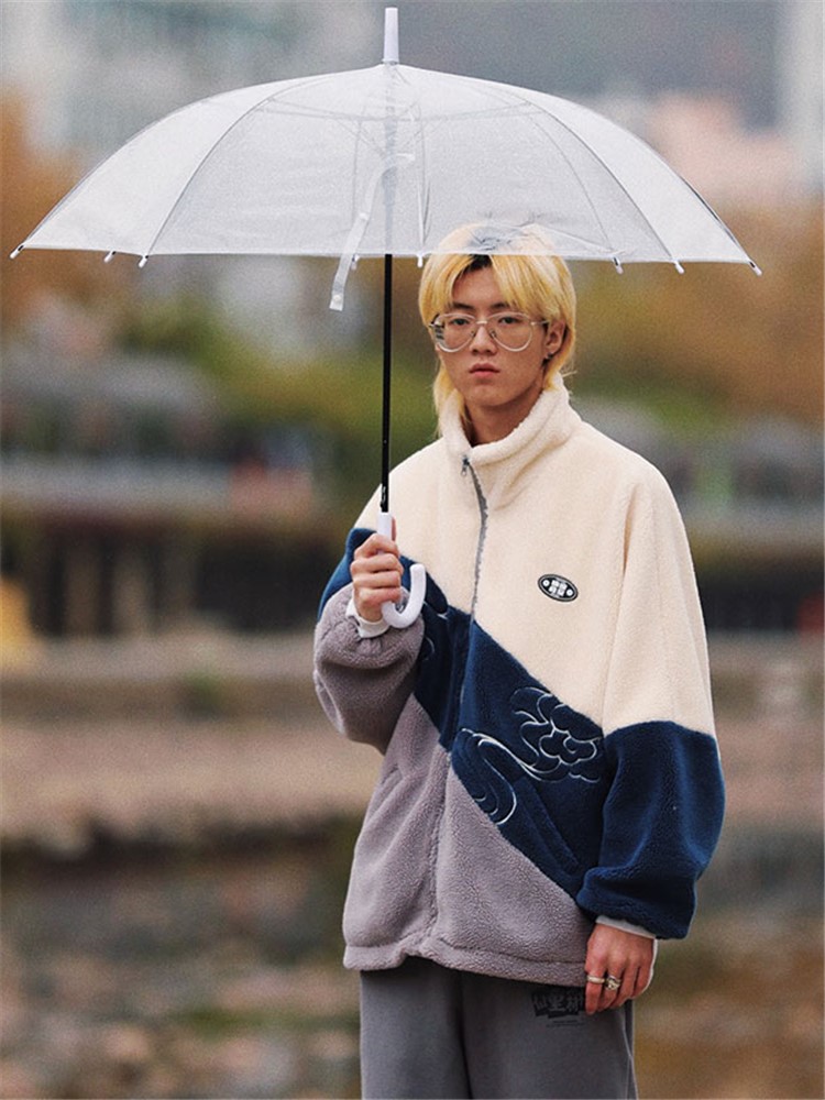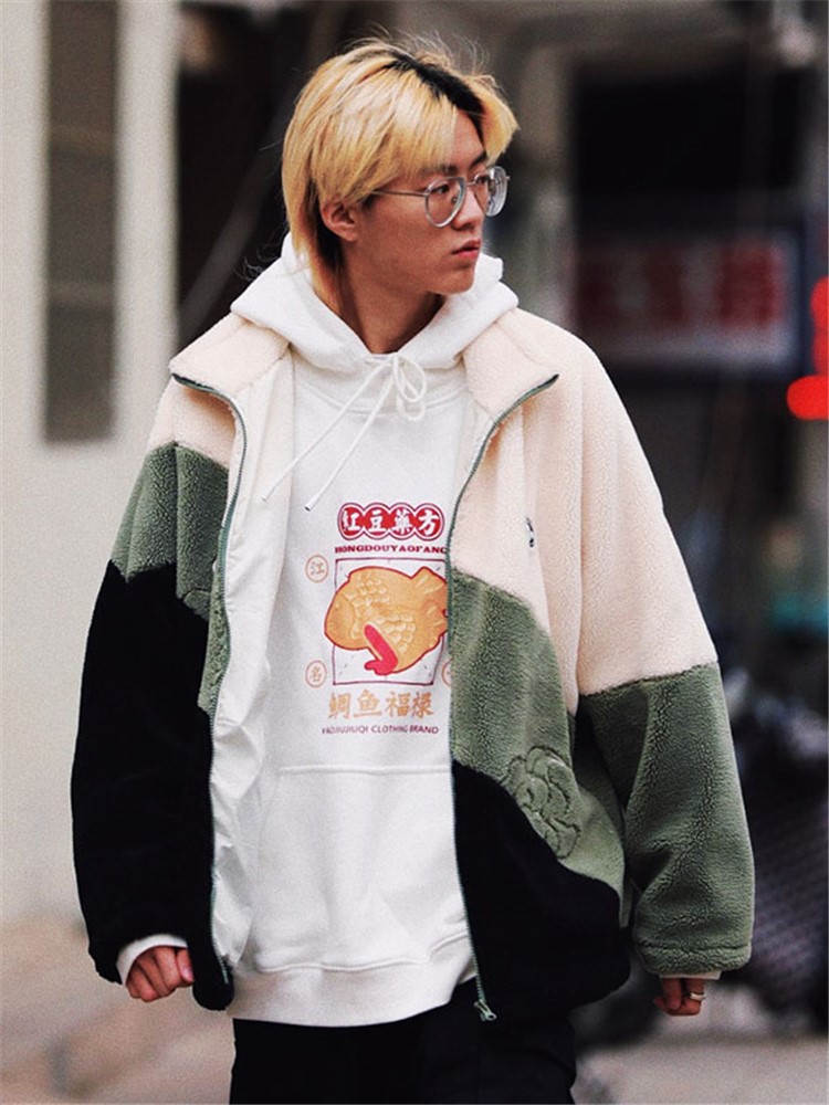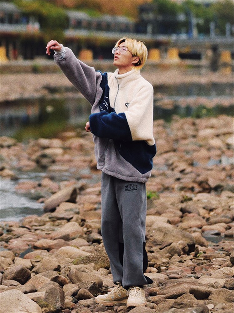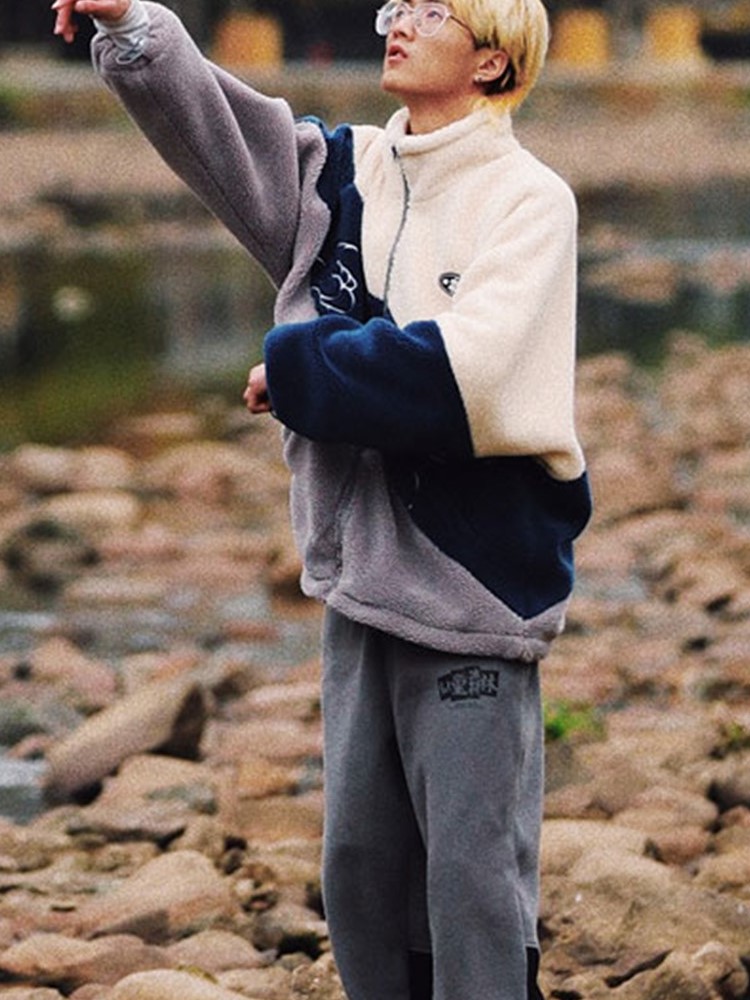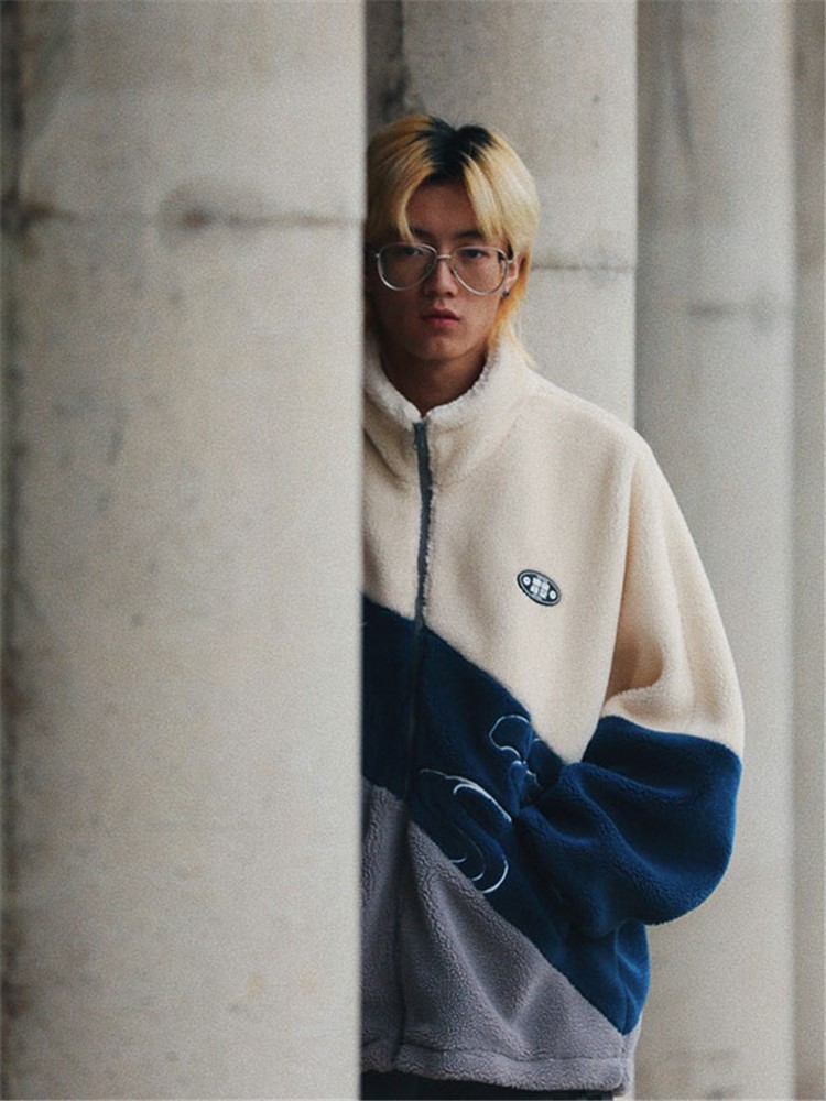 这款外套采用了优质的羊羔毛面料,手感柔软舒适,保暖性好,经典的圆领设计,穿着舒适,胸前的撞色拼接设计,丰富了整体的层次感,宽松的版型,穿着舒适自在。