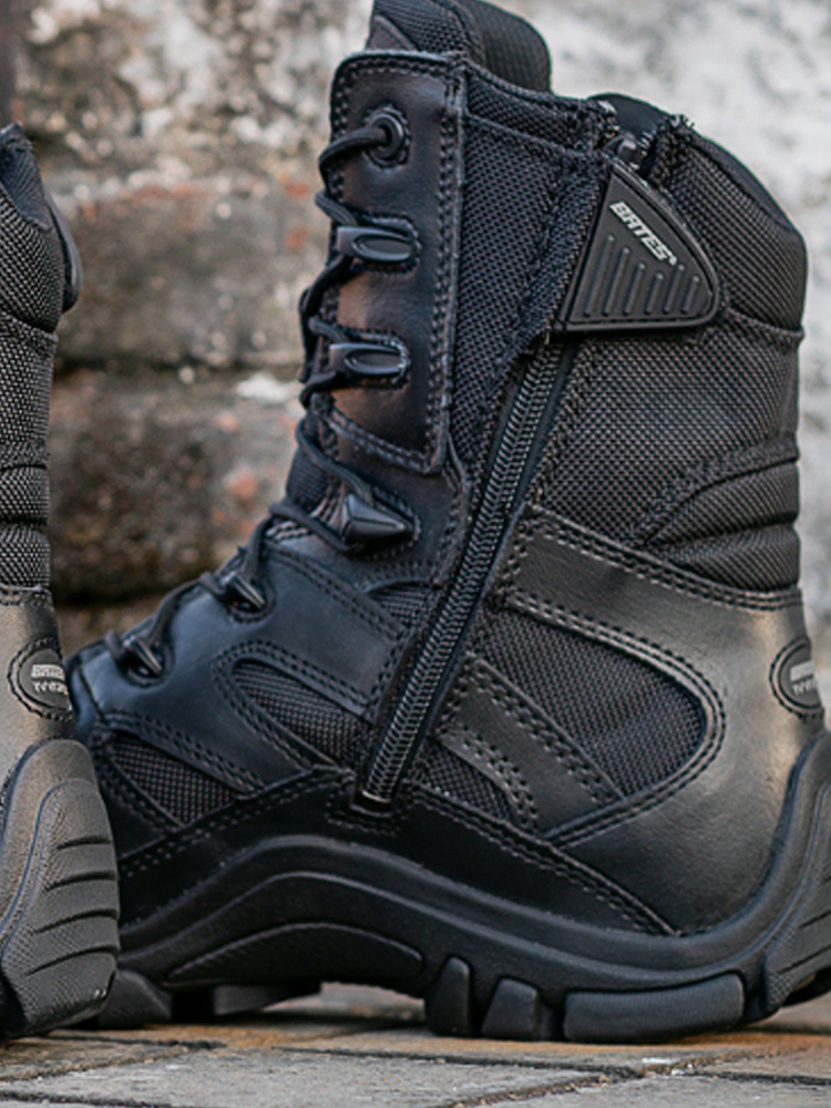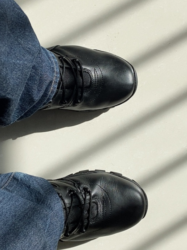 简约又不失成熟稳重的高帮军靴,防水的设计让出行更加的便利;舒适透气的防臭鞋垫,帮助足步排除湿气,为足部提供良好的温度调节,保证足步的舒爽。