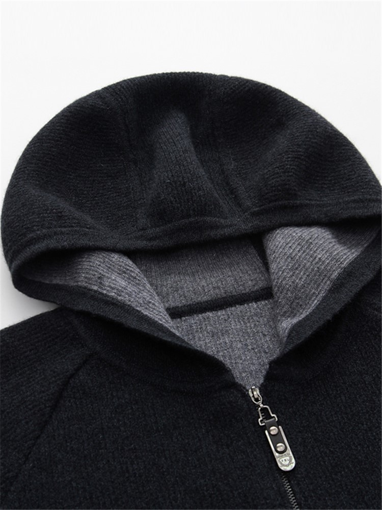开衫设计,穿脱更加方便,外套连帽设计,防风保暖,毛衣连帽设计,防风保暖。