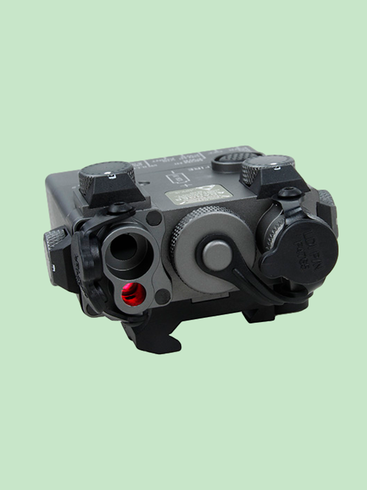 激光目标指示器,可以装在距目标一定距离的地面平台上,通常用于激光制导炮弹的引导。目前大多数目标指示器都安装在飞机上。装在飞机上的目标指示器,靠机上的稳定和跟踪系统,使激光发射源射出的光束,始终对准被攻击的目标,为导弹或炸弹提供一个稳定、清晰、可靠的“光篮”。