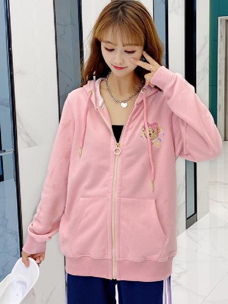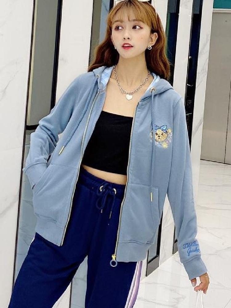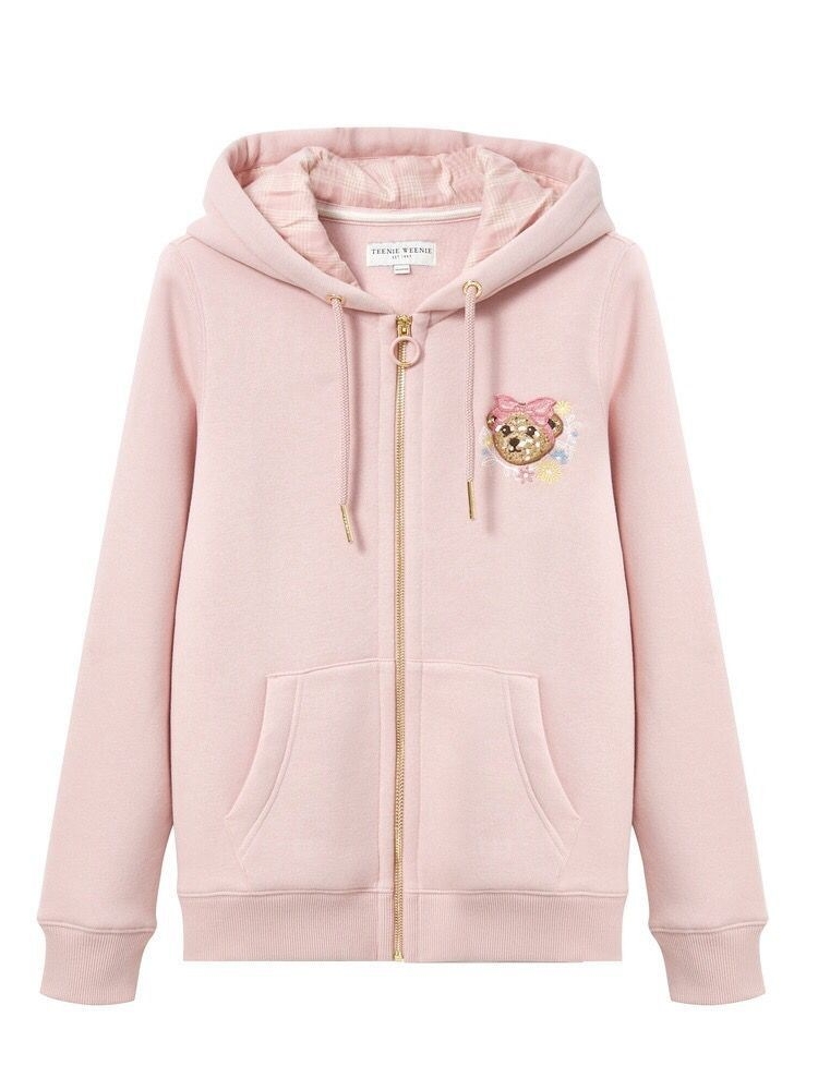 衣身前幅的小熊与印花,透露出小女生的可爱与童真,张扬着青春的朝气与活力感。连帽款式的卫衣,上身效果随性自由无束缚感,具有减龄的视觉效果。前幅有袋鼠口袋的装饰,方便双手的插入凹出街拍感。