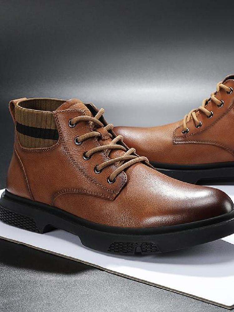 丁靴搭配出的帅气与时尚,成为男士梦寐以求的时尚鞋款。高帮圆头是马丁靴的特点,经典系带设计,鞋面头层牛皮,柔软舒适,透气性好。耐磨性高的橡胶大底,防滑,减震。轻松打造完美属于自己鞋子。让你这个秋冬穿出属于自己的最潮街头味儿