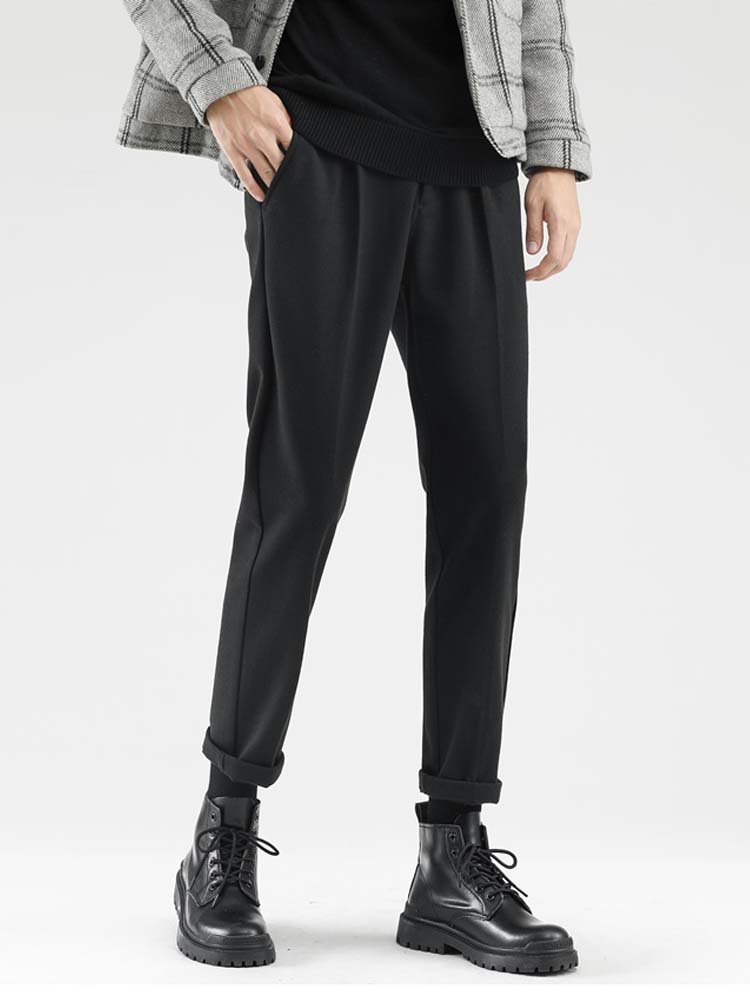 西装裤已经不像从前那般正式,被改造后的西装哈伦裤,非常的街头有型。搭配英伦风小皮鞋,非常的有范儿哦。