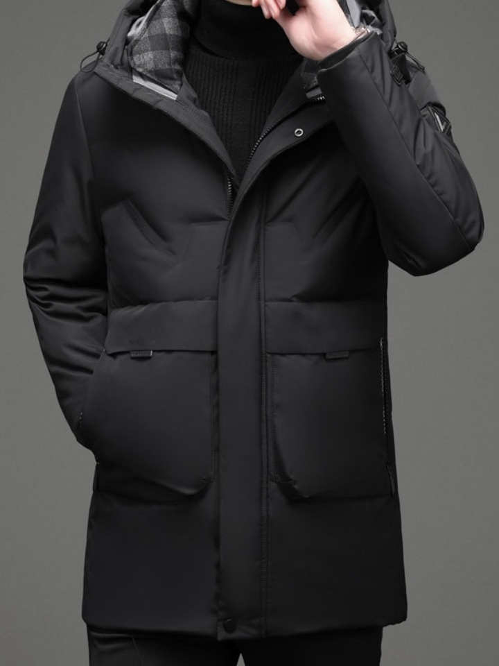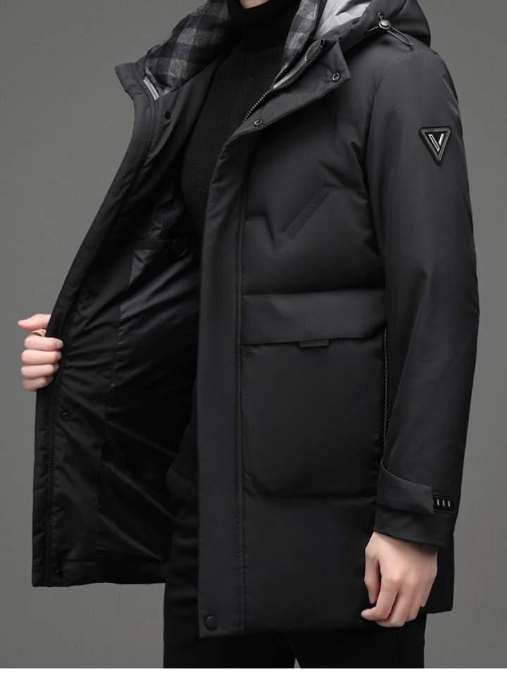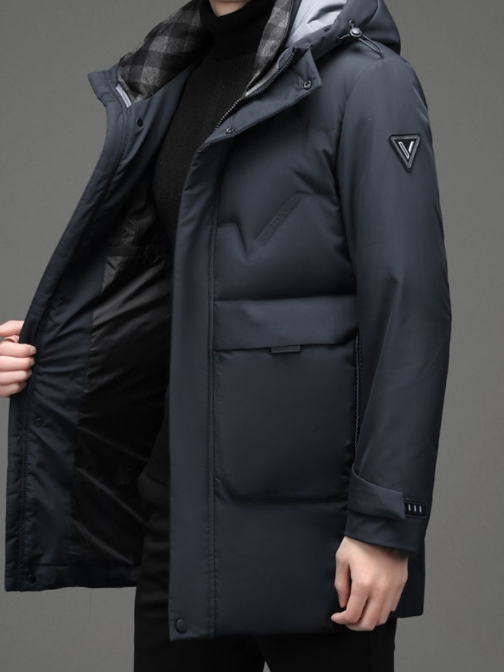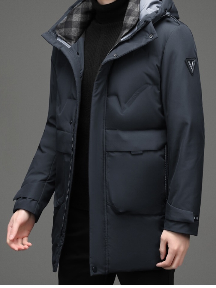 冬季御寒必备,中长款羽绒服,人性化立领设计加强保暖效果,精致剪裁工艺,加厚羽绒保暖效果好,不易跑毛,修身设计贴身保暖,拒接厚重,一件羽绒服就够过寒冬了,简单时尚还保暖,有着双重效果。