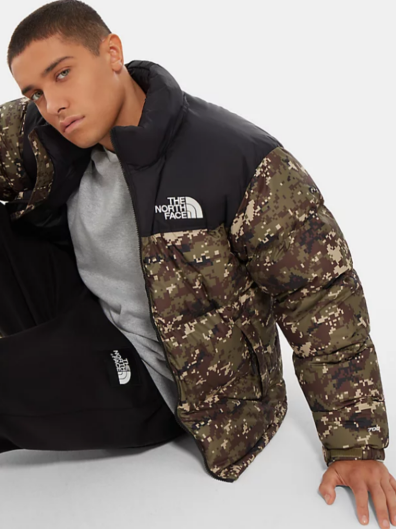 迷彩印花元素近年来大为人们喜爱,立领设计又使得上身效果利落大方,同时也起到一定的挡风锁温的作用。