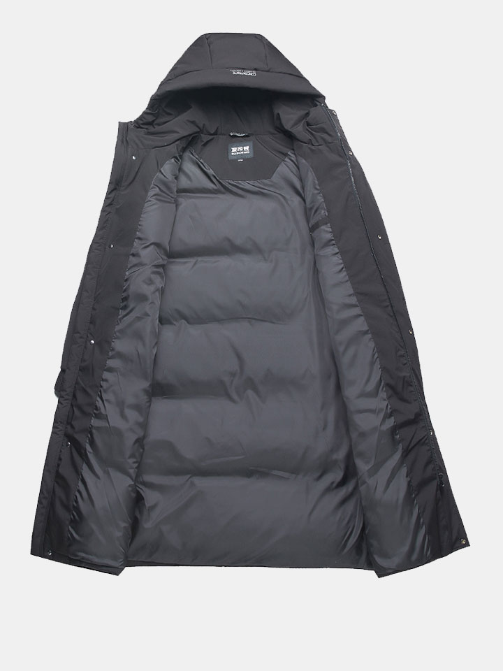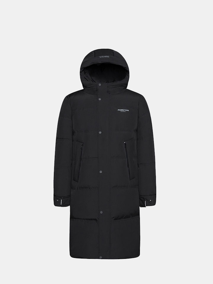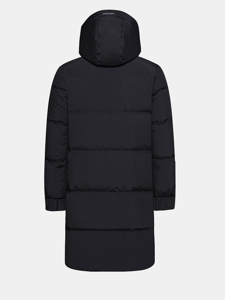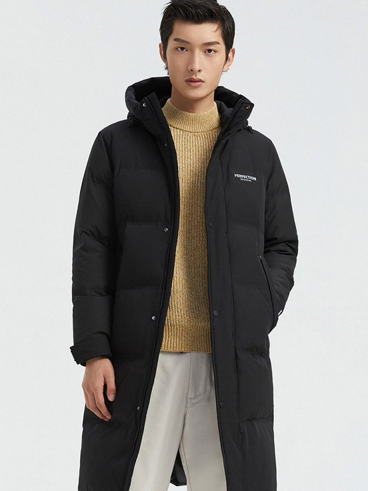 经典耐看的黑色羽绒服,过膝长款的版型穿上不仅很保暖,还十分显高呢,连帽更是休闲百搭哦。