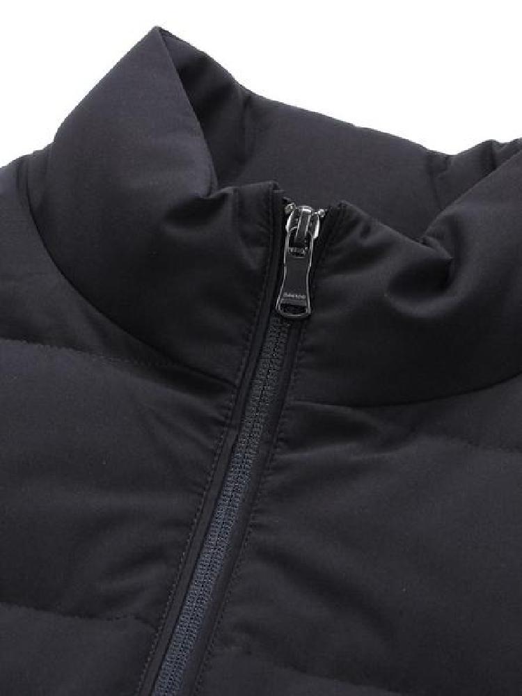 商务立领搭配单排扣拉链,商务中透出一丝休闲,配合90白鸭绒,2色可选,辑行裁剪,配合防风面料,冷冬力荐