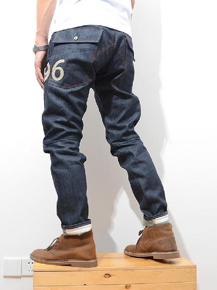 这款牛仔裤,采用13.5OZ高磅数原色赤耳单宁,后袋标志性的金色双刀logo刺绣,另一侧则是最新死亡之蝎立体刺绣,正面火机袋加绣MK骷髅logo,细节出色,