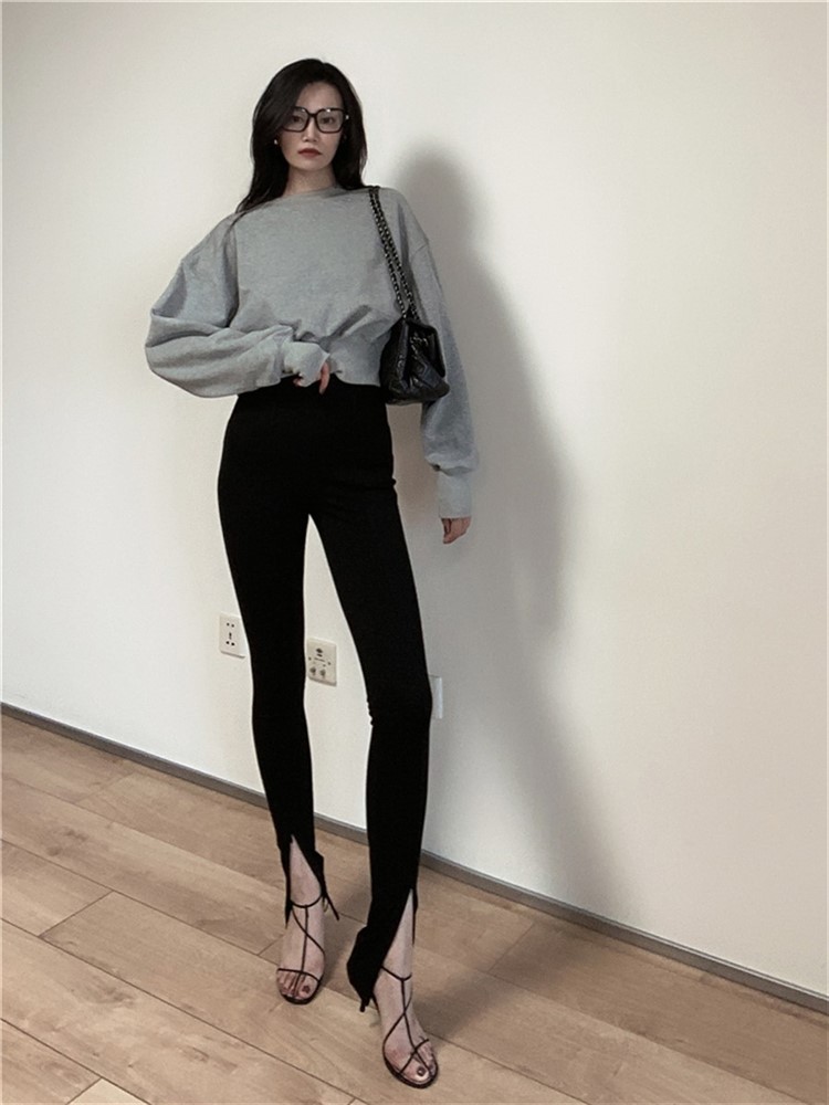 一条黑色打底裤单穿打底各式风情,打底裤,修饰腿部的线条。