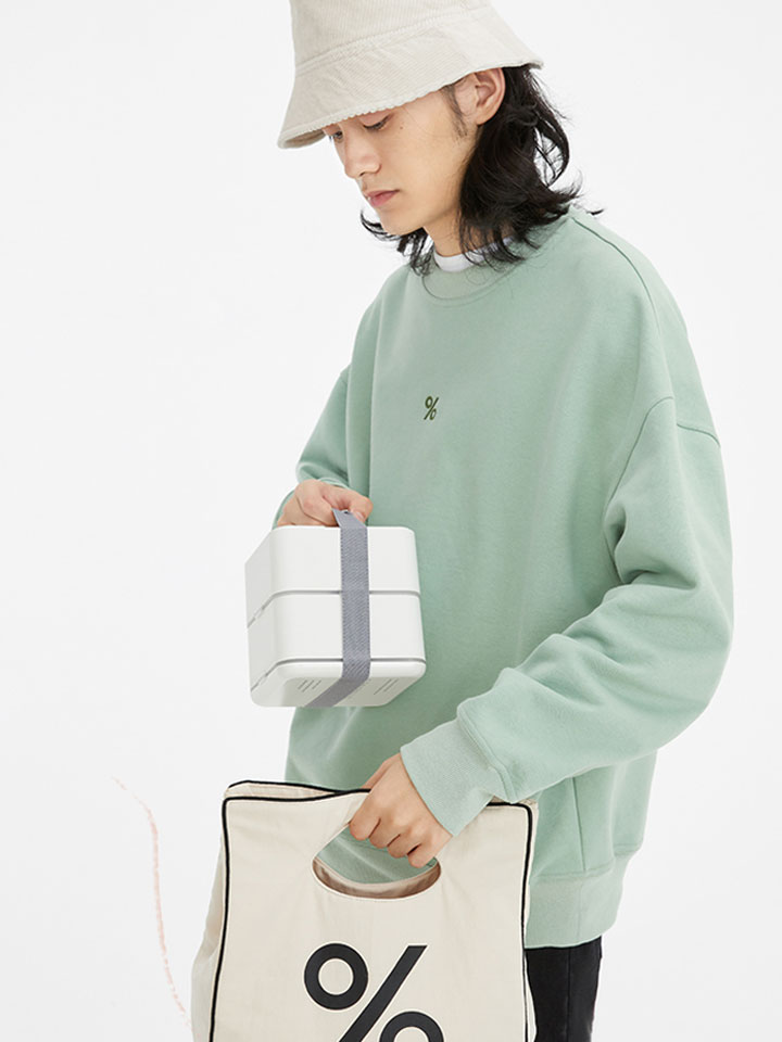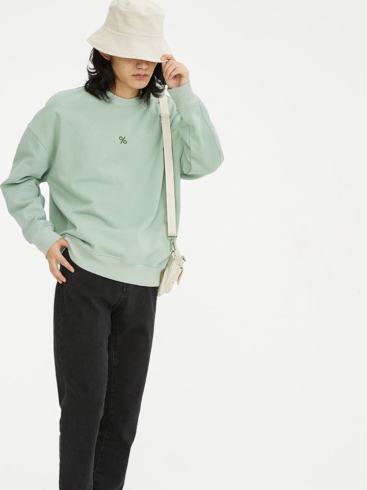 圆领的纯色衣身设计,一款卫衣上身就能表现出时髦层次感。