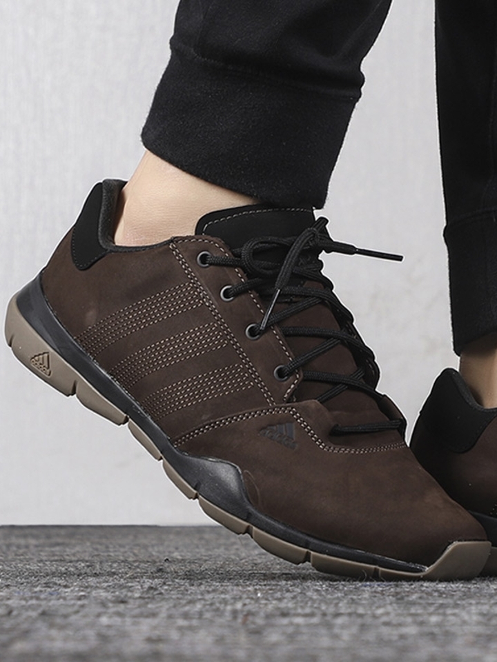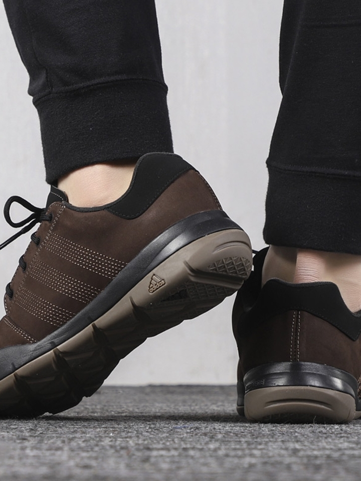 经典黑色大身,搭载adiPRENE中底,采用Continental橡胶大底配合块状底纹呈现,鞋身则为经典的adidas三条纹标志设计,作为越野鞋的它,鞋头十分坚固,严密的缝合线经久耐穿,缓冲阻力。