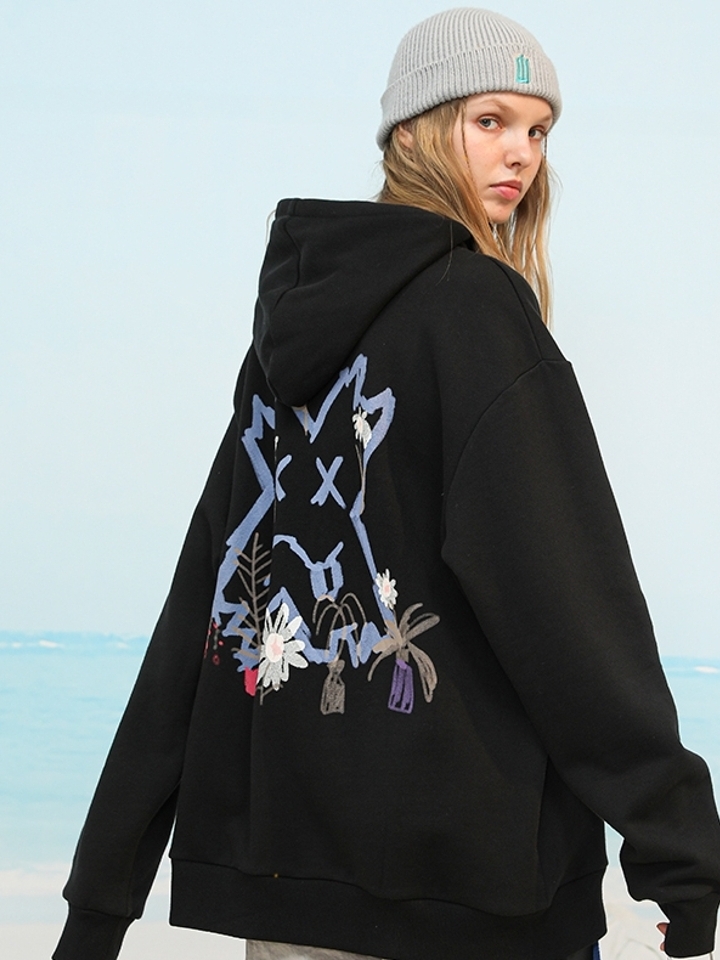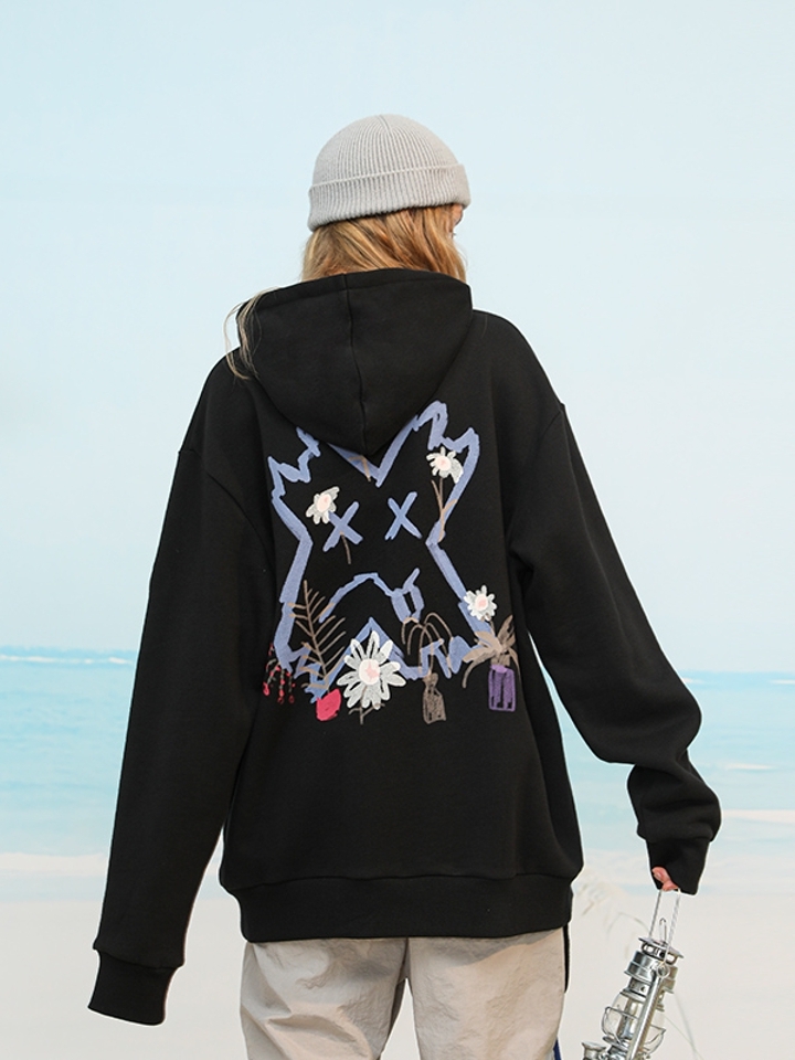 此款卫衣酷帅的造型深受青少年喜爱和追求,时尚的白云图案浮动在黑色的衣身上,有种云里雾里的飘忽感,搭配袖口两边显眼的大面积红色条纹,带来强烈的视觉冲击,充分展现出街头潮流休闲范儿,引领时尚新风采。