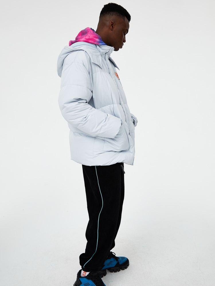 这一款羽绒服格外的厚实暖和,上身很抬气。衣身采用的是90%白鸭绒填充,蓬松厚实,聚热性极佳,穿着非常的暖。饱满连帽设计,防风御寒,造型感满分!