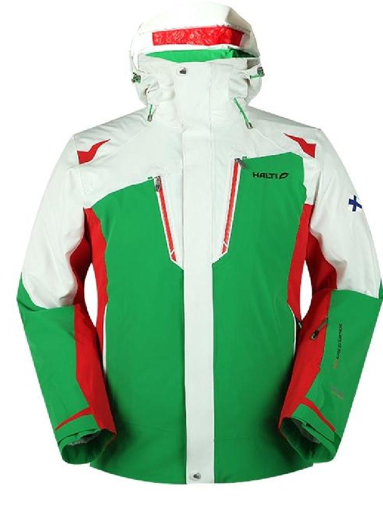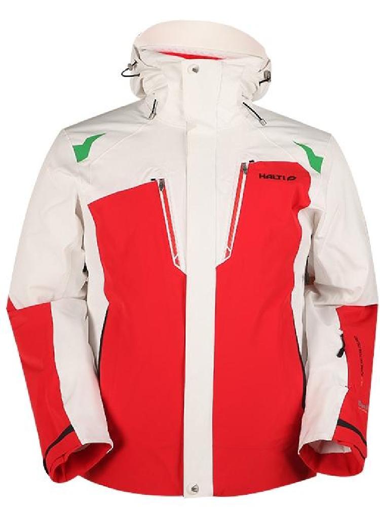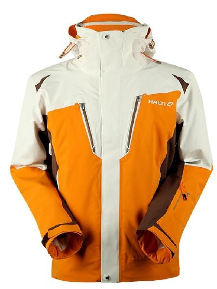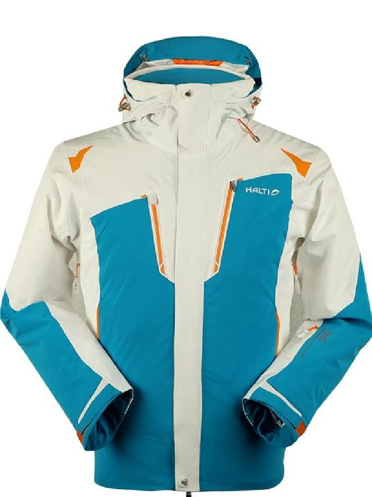 这款HALTI的户外滑雪服采用DrymaxX面料制作,面料具有良好的透气效果,避免运动中闷热,同时防风防雨,弹性特点保证运动中伸展自如,防风帽设计,围度可调节,具有防风保暖的效果,腋下的透气拉链为身体与空气交互提供了便捷,增强了空气流通性。