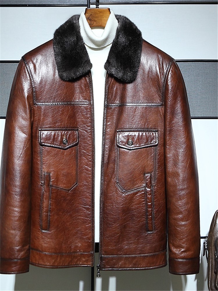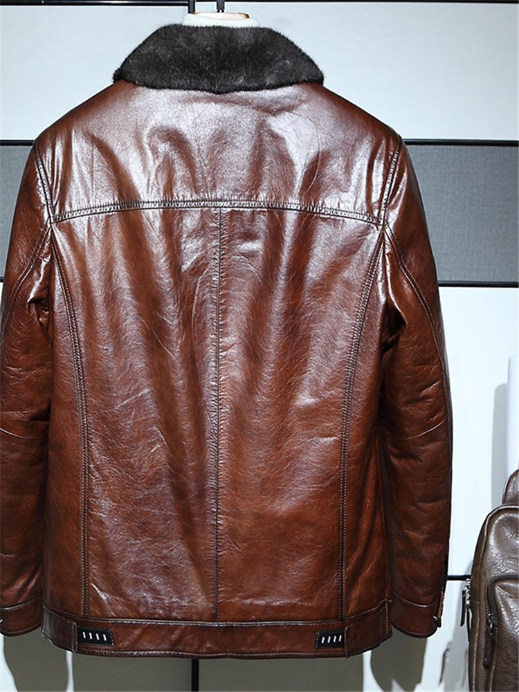 这款皮衣采用优质的绵羊皮材质,手感柔软细腻,穿着舒适保暖。
