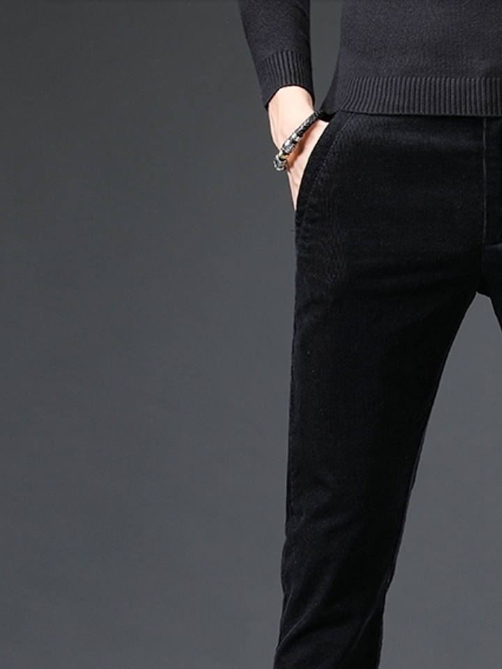 时尚休闲的长裤,上身更加舒适。搭配一件黑色的长袖打底衫,无需过多的图案点缀,搭配出不一样的时尚感。一双经典的小白鞋,干净又大方,展现出了潮男时尚魅力。