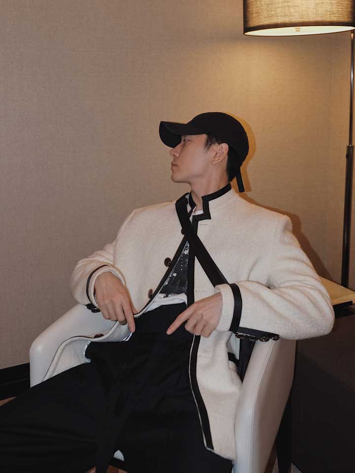 这款夹克采用羊毛呢的材质,手感细腻有质感。