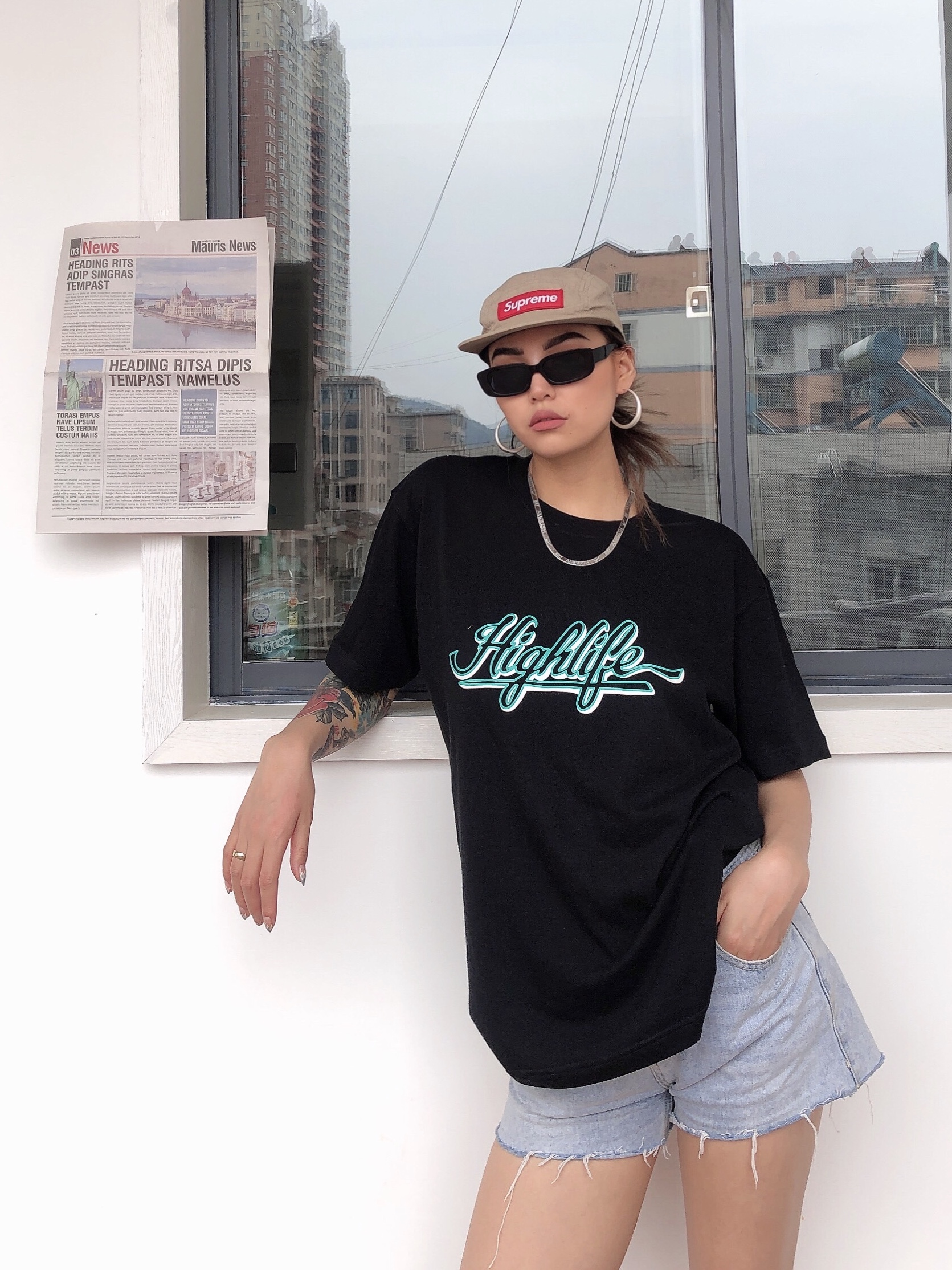 这款t恤是简约的风格,宽松的版型,时尚百搭,胸前的字母印花,很有个性,搭配牛仔裤或者短裤都很好看。