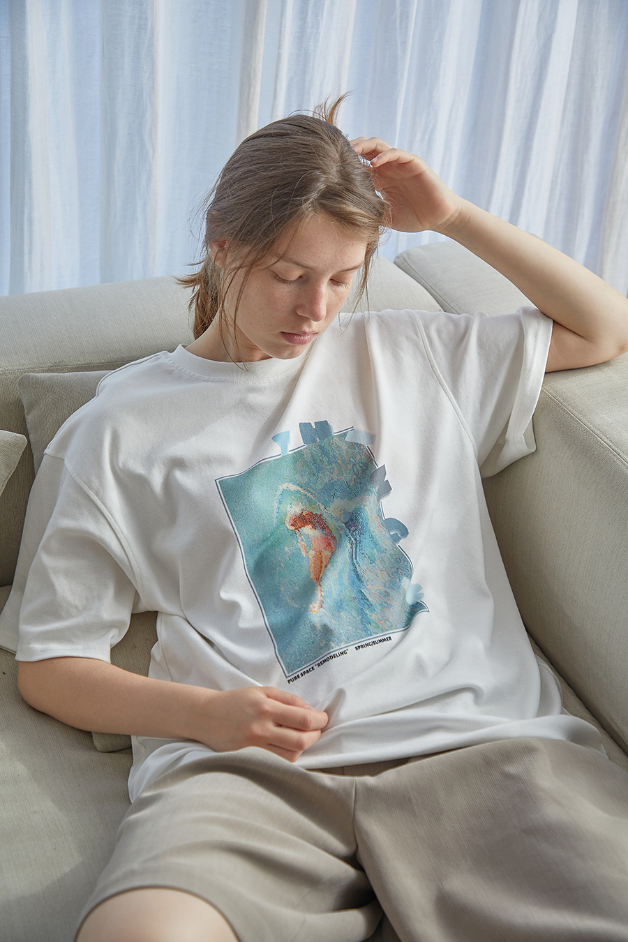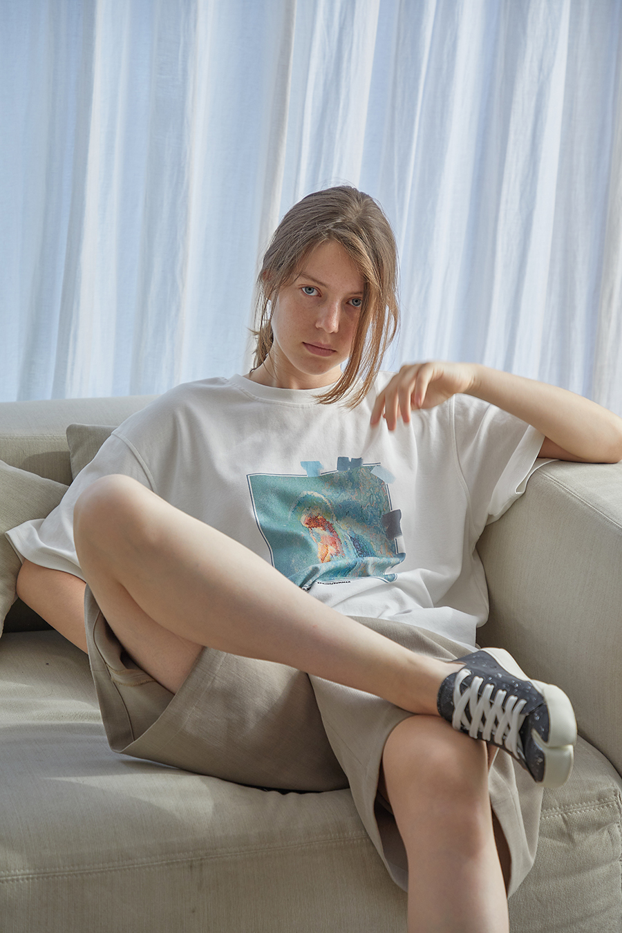 这款t恤是简约的风格,宽松的版型,时尚百搭,胸前的字母印花,很有个性,搭配牛仔裤或者短裤都很好看。