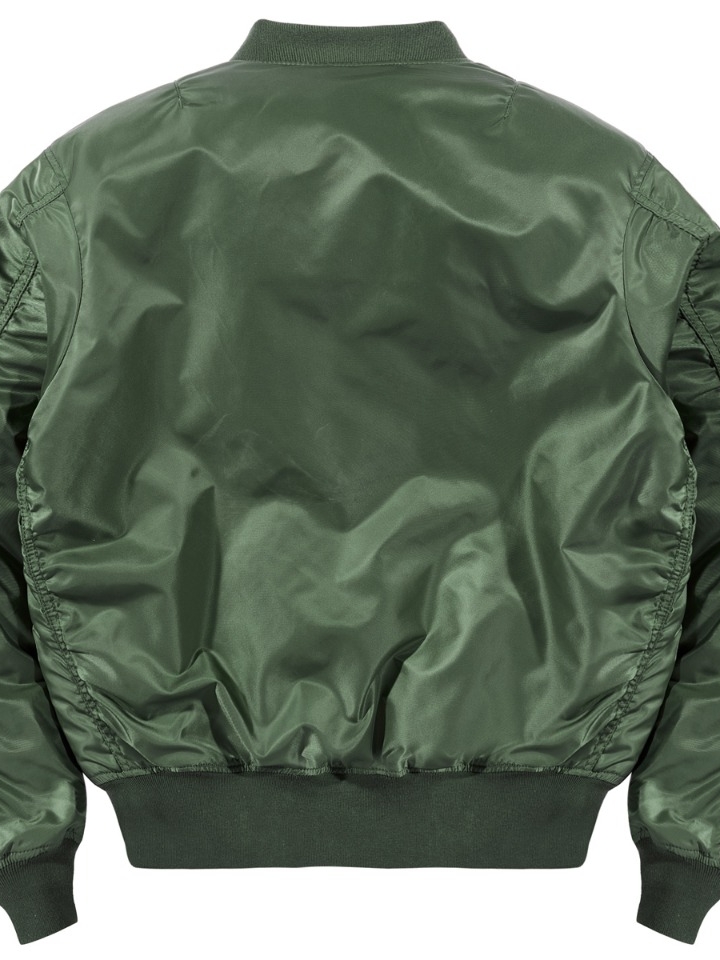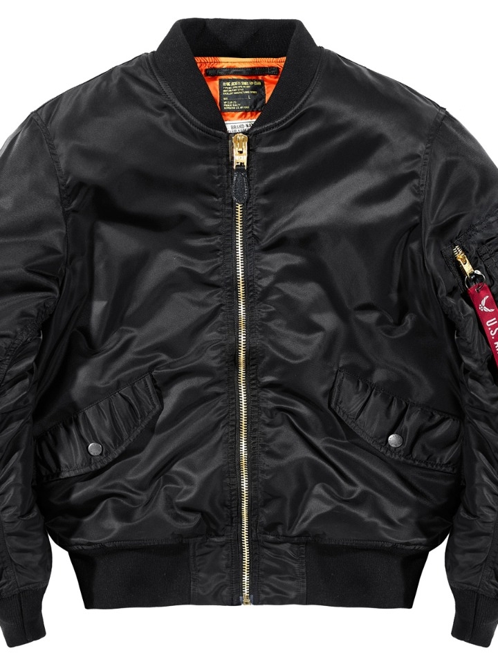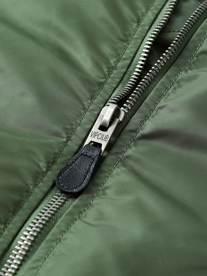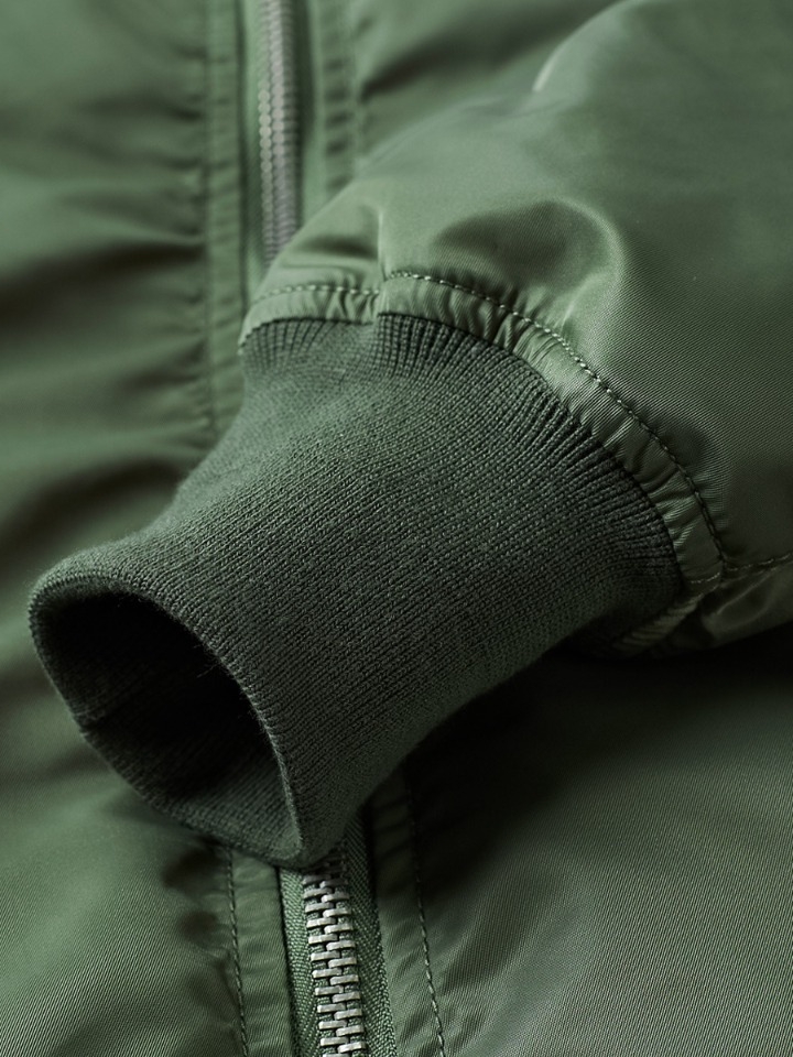 经典飞行员夹克版型,干练帅气。贴标元素装饰,复古风有潮感。色丁布面料,轻薄柔软,光滑细腻。