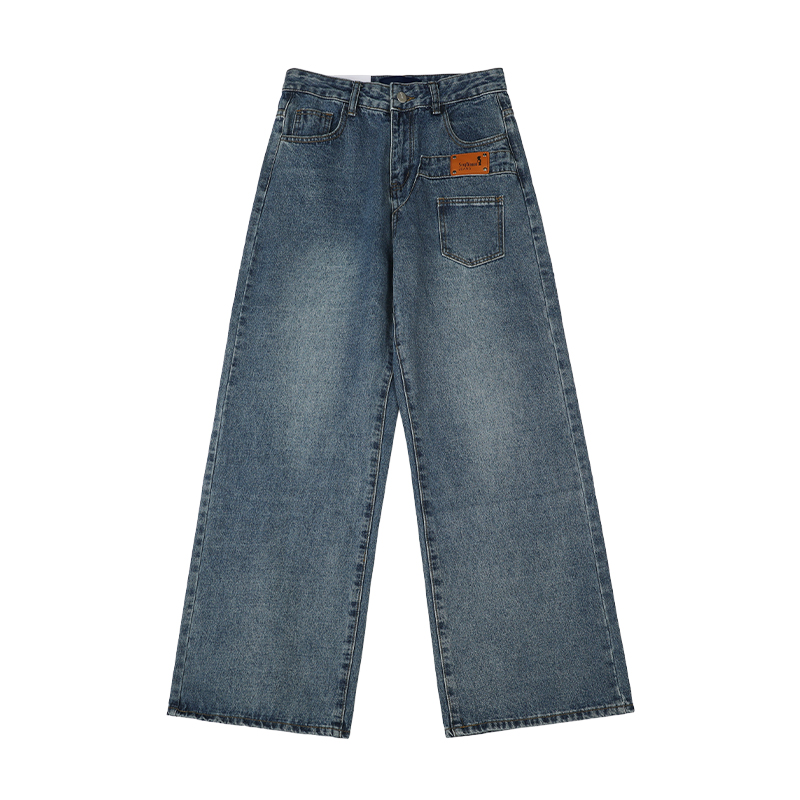 高腰设计,拉长身材比例。高腰牛仔裤,显瘦显腿长。直筒裤型,修饰腿部线条。