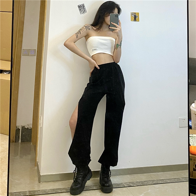 高腰的设计,拉长腿部线条,显瘦效果很好,高腰的版型,很显高挑,修身的剪裁,修饰腿部曲线,上身很有范。
