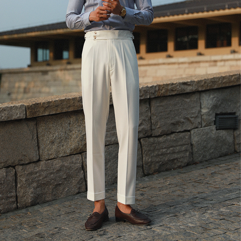 高腰的设计,拉长腿部线条,显瘦效果很好,高腰的版型,很显高挑,修身的剪裁,修饰腿部曲线,上身很有范。
