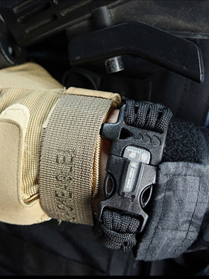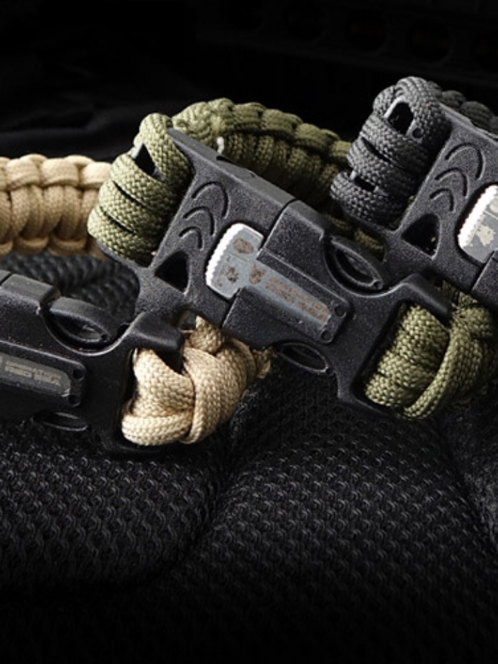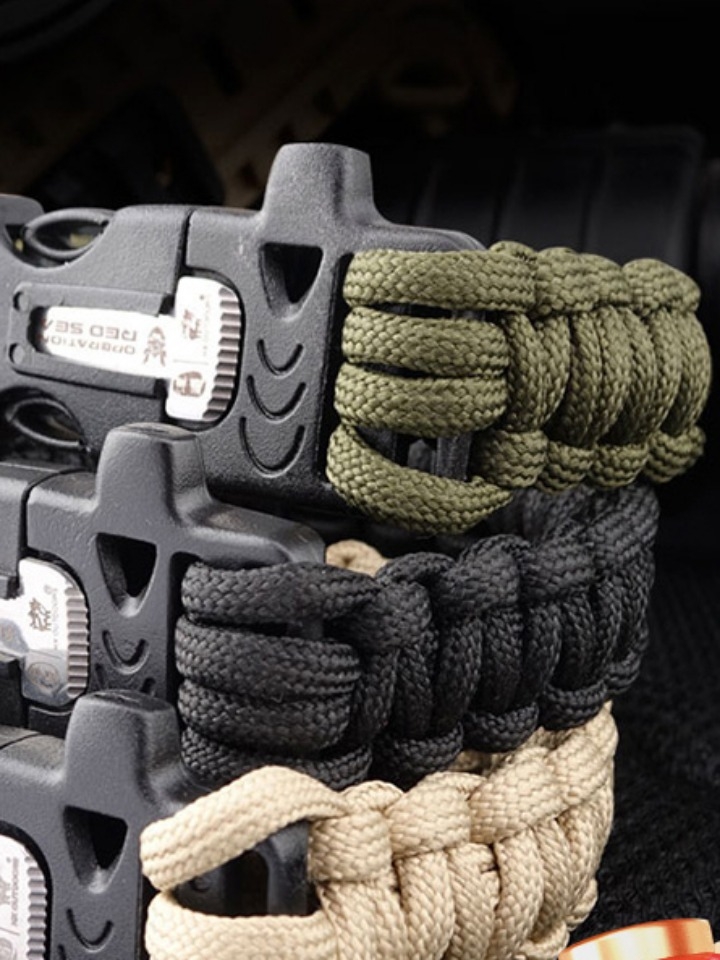 手工编织佩戴舒适有型,伞绳结实耐用。含有便携取卡针,实用不占地。采用整根伞绳编织,配备指南针和迷你军刀。