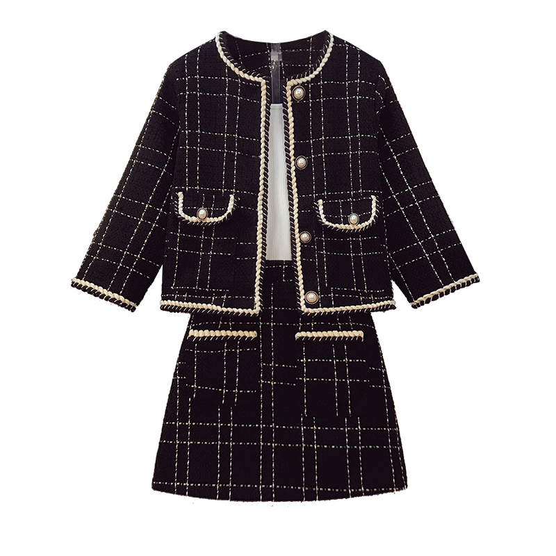 这款连衣裙是复古的风格 ,千鸟格的样式 ,时尚大气 ,搭配上一条半身裙 ,很有气质 。