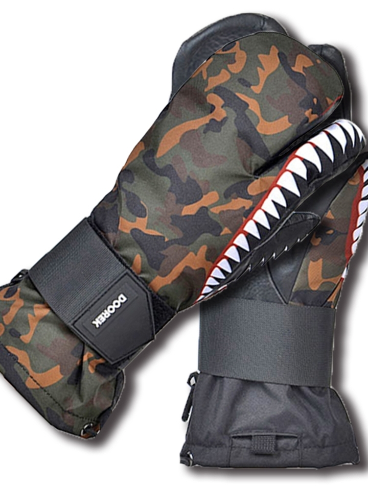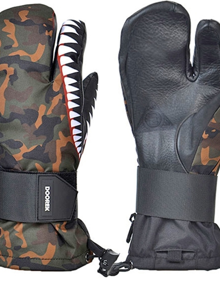 这款滑雪手套有迷彩鲨鱼和黑白手指两款颜色款式设计,非常时尚潮流,能够满足不同需求。掌心部分选用进口牛皮,纹理特别,具备防滑耐磨抗撕裂等诸多性能,保护手部安全。同时外层的高密度杜邦防水面料,超强防水,内里加棉包裹,保暖性非常得好。