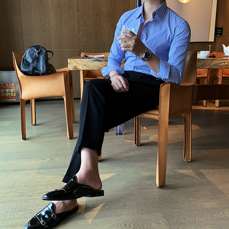 高腰的设计,拉长腿部线条,显瘦效果很好,高腰的版型,很显高挑,修身的剪裁,修饰腿部曲线,上身很有范。