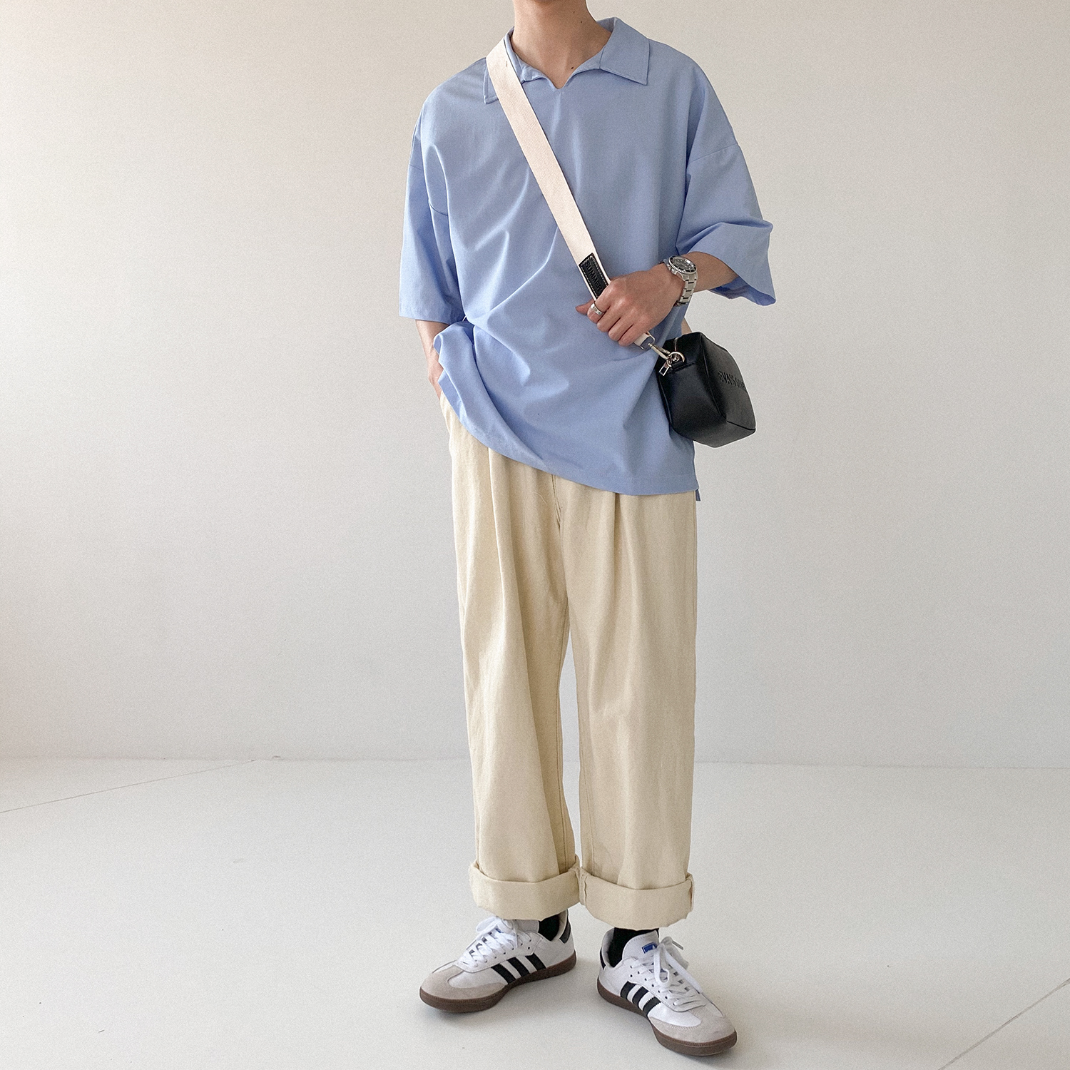 简约的高腰设计,搭配上修身的版型,上身显瘦又显高。