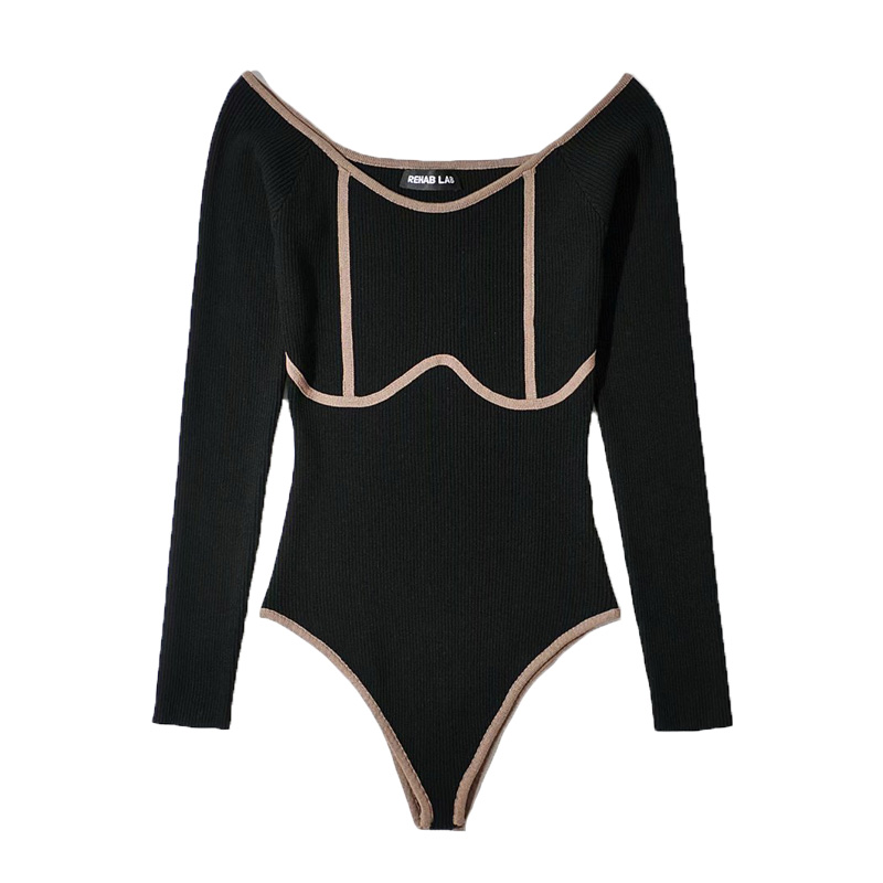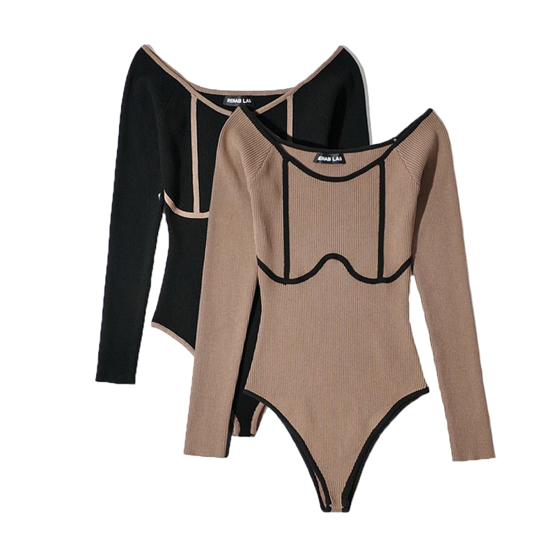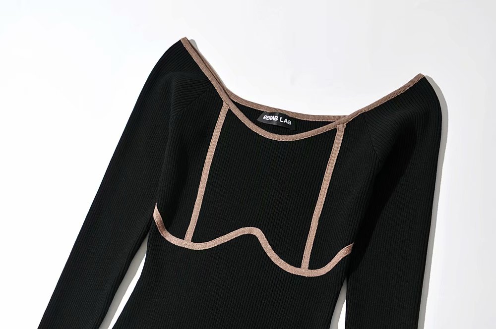 一字领的设计 ,性感又迷人 。撞色拼接设计 ,丰富视觉层次感 。