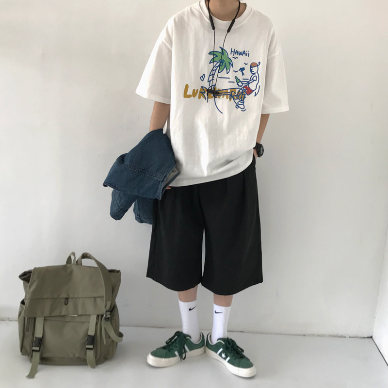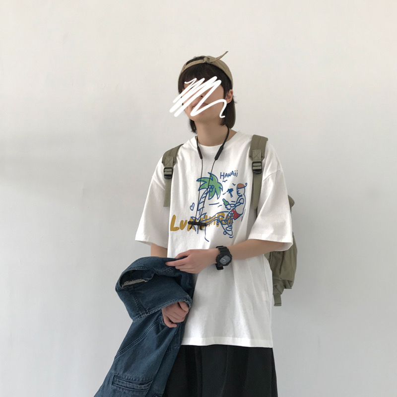 这款t恤是简约的风格,宽松的版型,时尚百搭,胸前的字母印花,很有个性,搭配牛仔裤或者短裤都很好看。