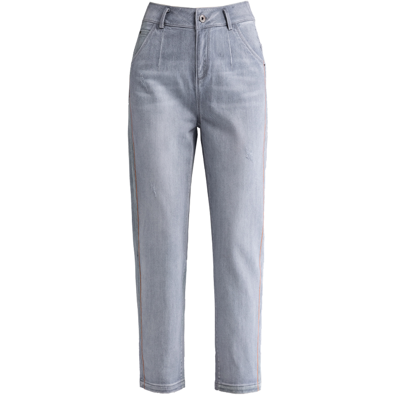 高腰设计,拉长身材比例。高腰牛仔裤,显瘦显腿长。直筒裤型,修饰腿部线条。