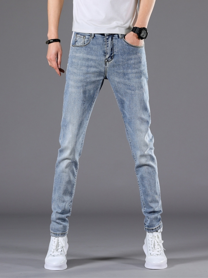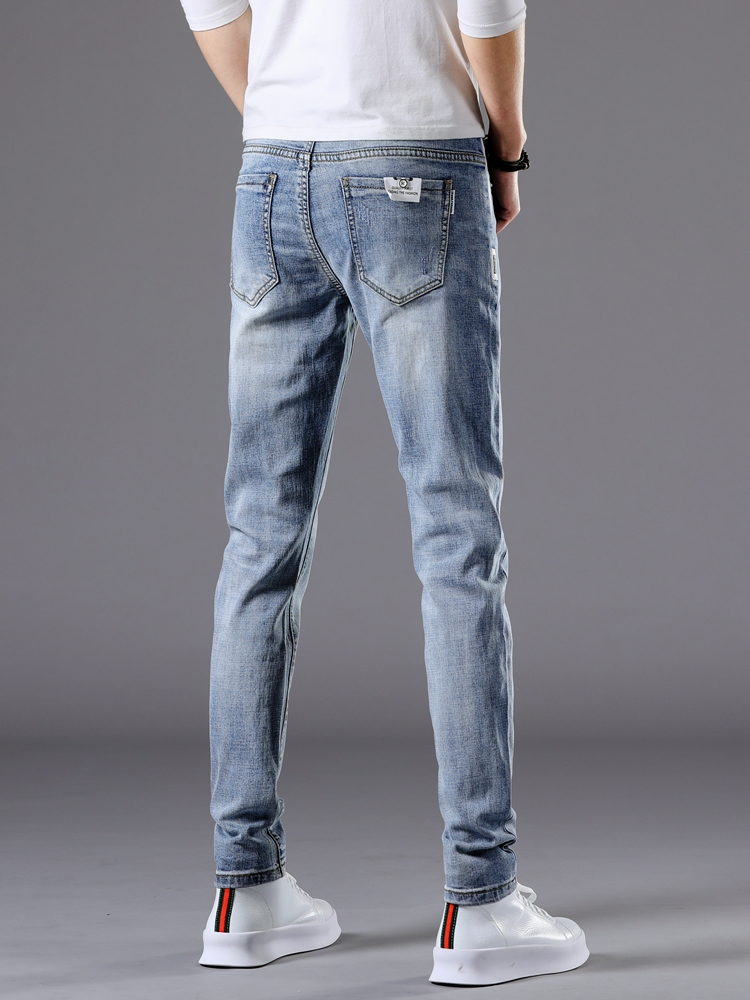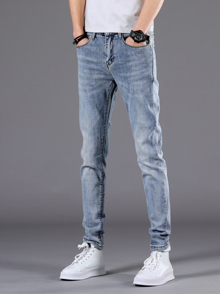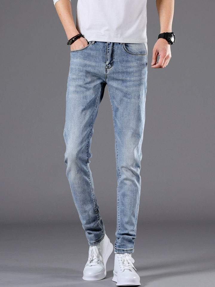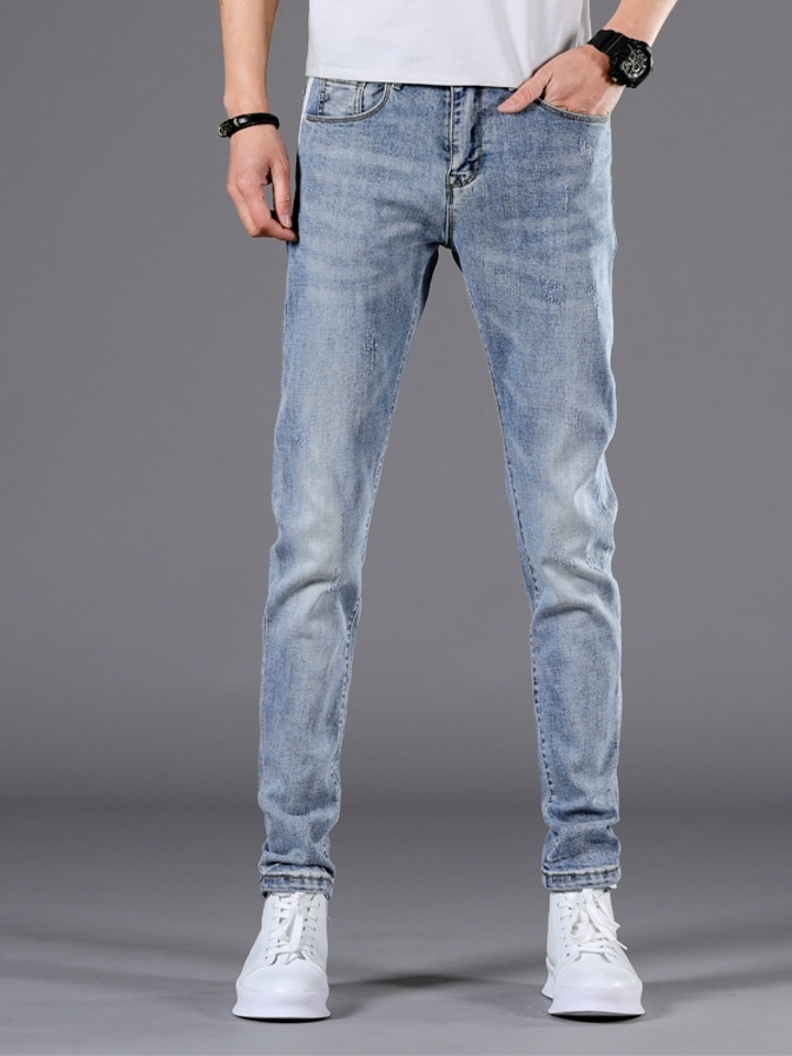 水洗磨白工艺处理,彰显复古怀旧的街头风。修身版型,凸显身材曲线,棉质牛仔面料,舒适透气,水洗牛仔裤,休闲感十足,彰显青春活力。