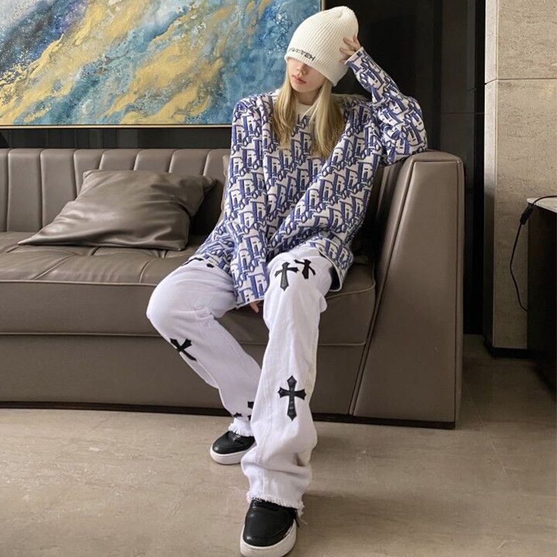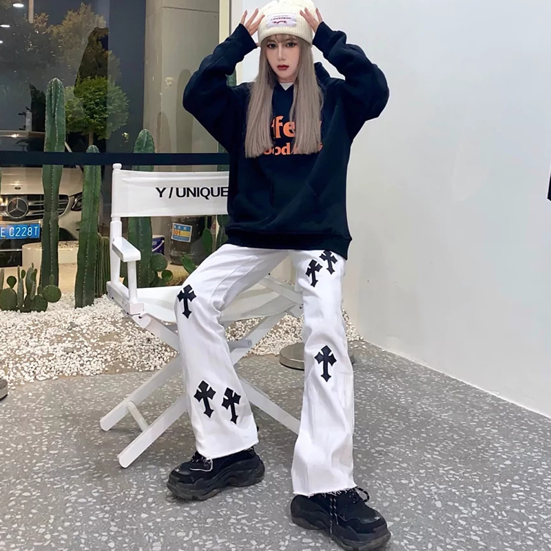 这款牛仔裤的设计很有特色,高腰的版型,很好的修饰了身材比例,显瘦效果很棒,搭配一件T恤,就能轻松穿出时尚感。