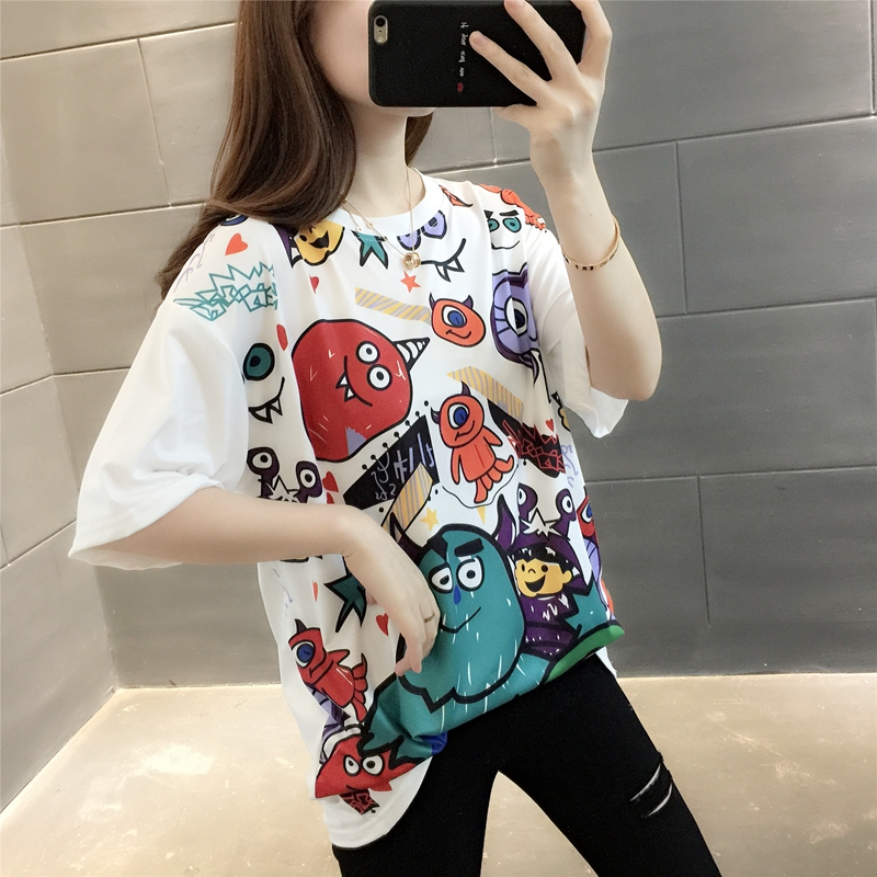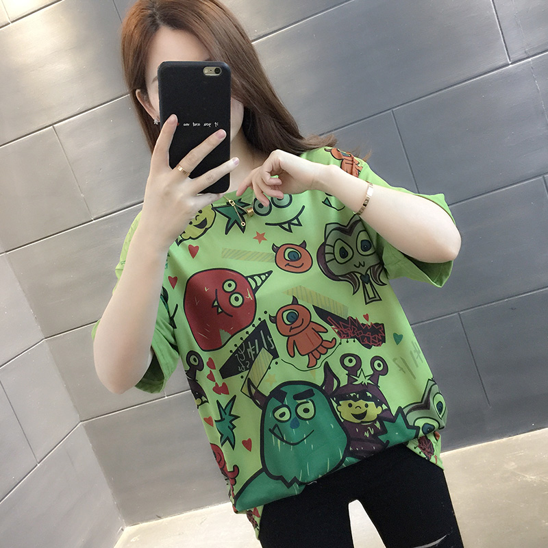这款t恤是简约的风格,宽松的版型,时尚百搭,胸前的字母印花,很有个性,搭配牛仔裤或者短裤都很好看。