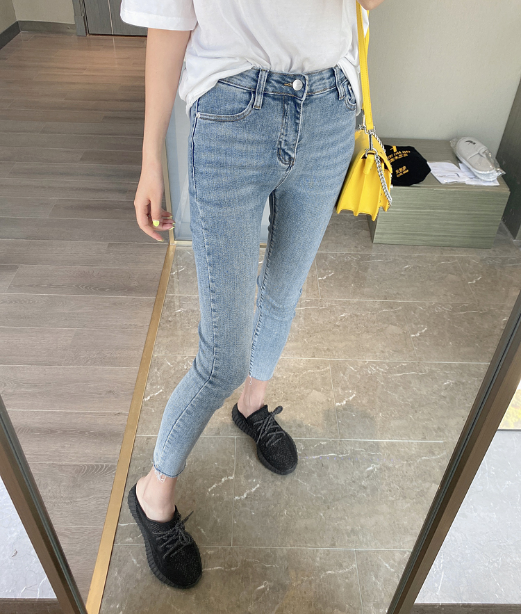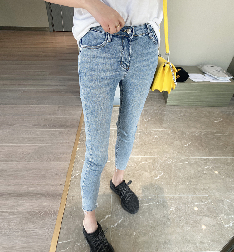 高腰设计,拉长身材比例。高腰牛仔裤,显瘦显腿长。直筒裤型,修饰腿部线条。