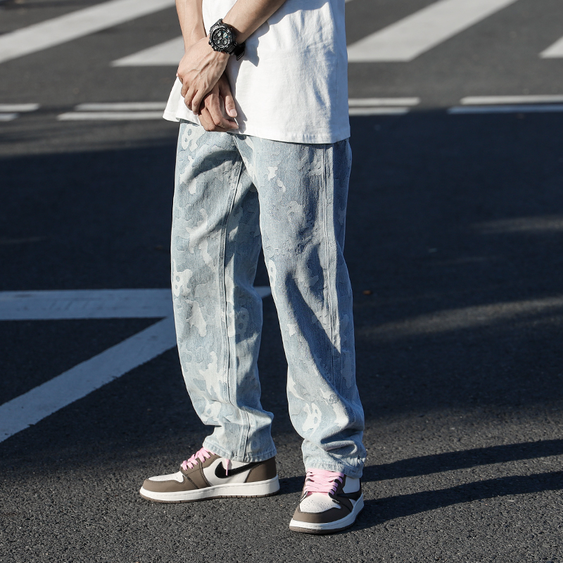 高腰设计,拉长身材比例。高腰牛仔裤,显瘦显腿长。直筒裤型,修饰腿部线条。