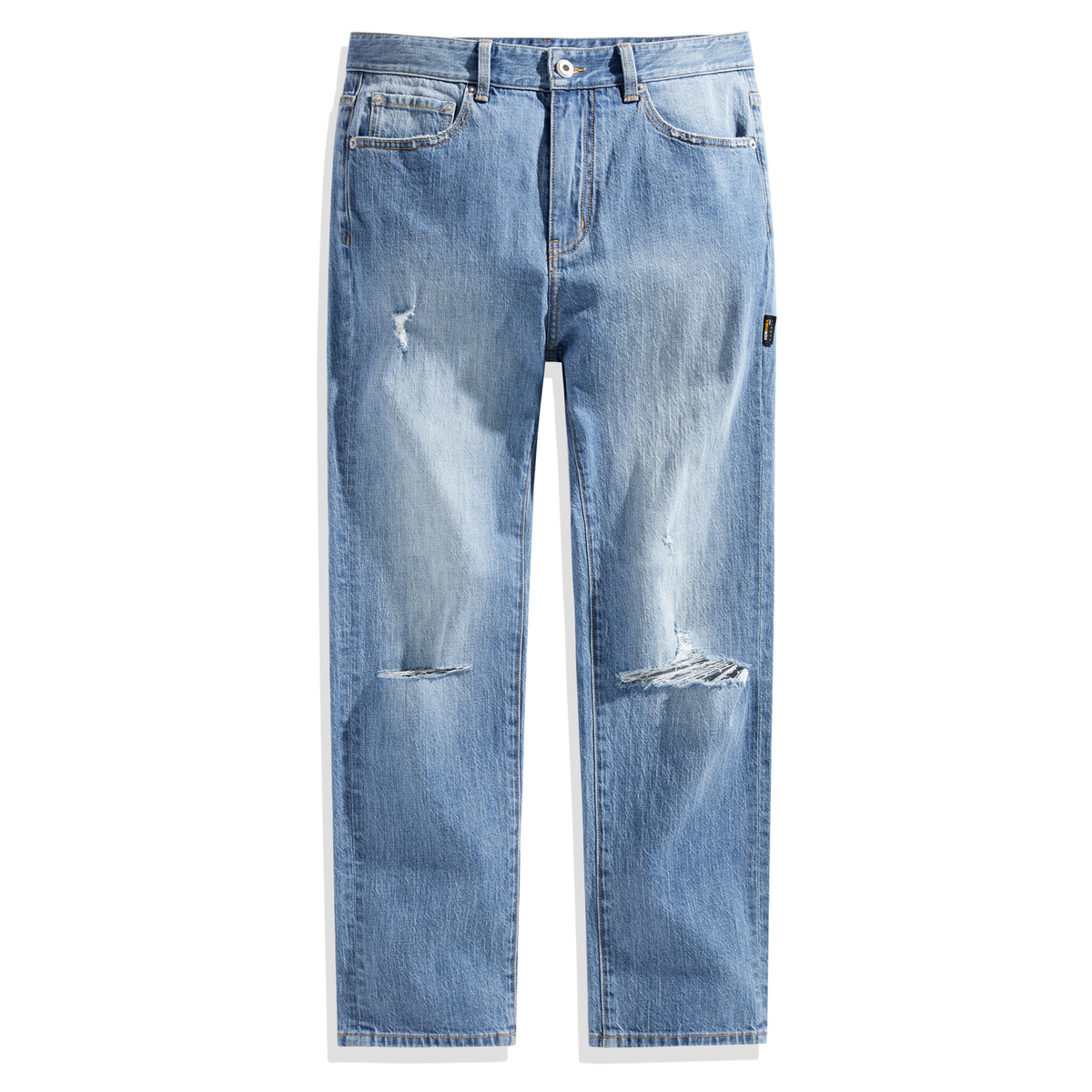 这款牛仔裤采用了破洞的设计,让裤子看起来更加的时尚,而且还能很好的修饰腿型。