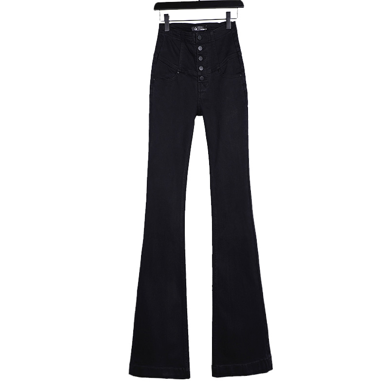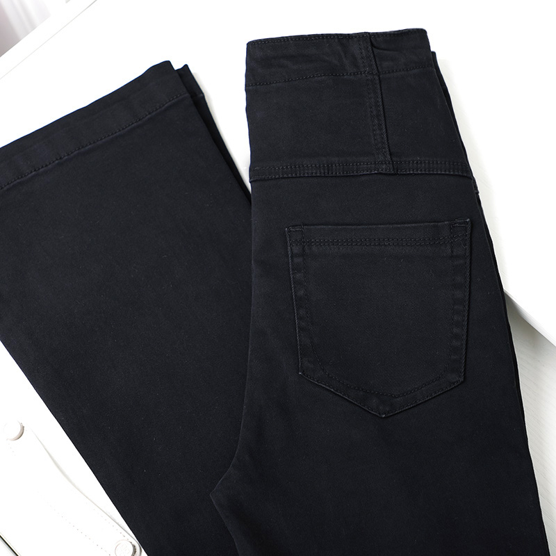 高腰设计,拉长身材比例。高腰牛仔裤,显瘦显腿长。直筒裤型,修饰腿部线条。