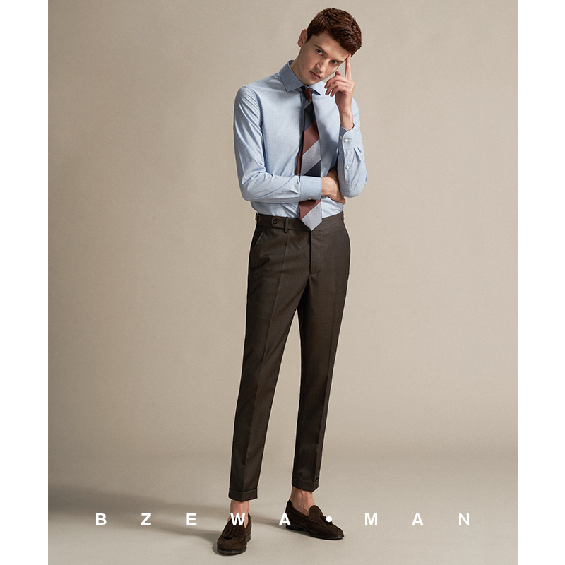 简约的高腰设计,搭配上修身的版型,上身显瘦又显高。