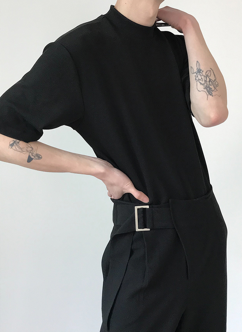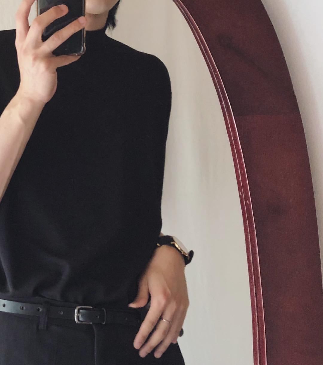简约的高腰设计,搭配上修身的版型,上身显瘦又显高。