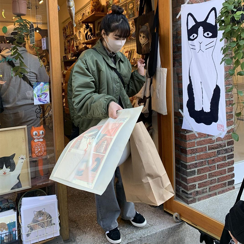宽松的版型 ,不挑身材 ,上身效果很好 ,很有学院风的感觉 。