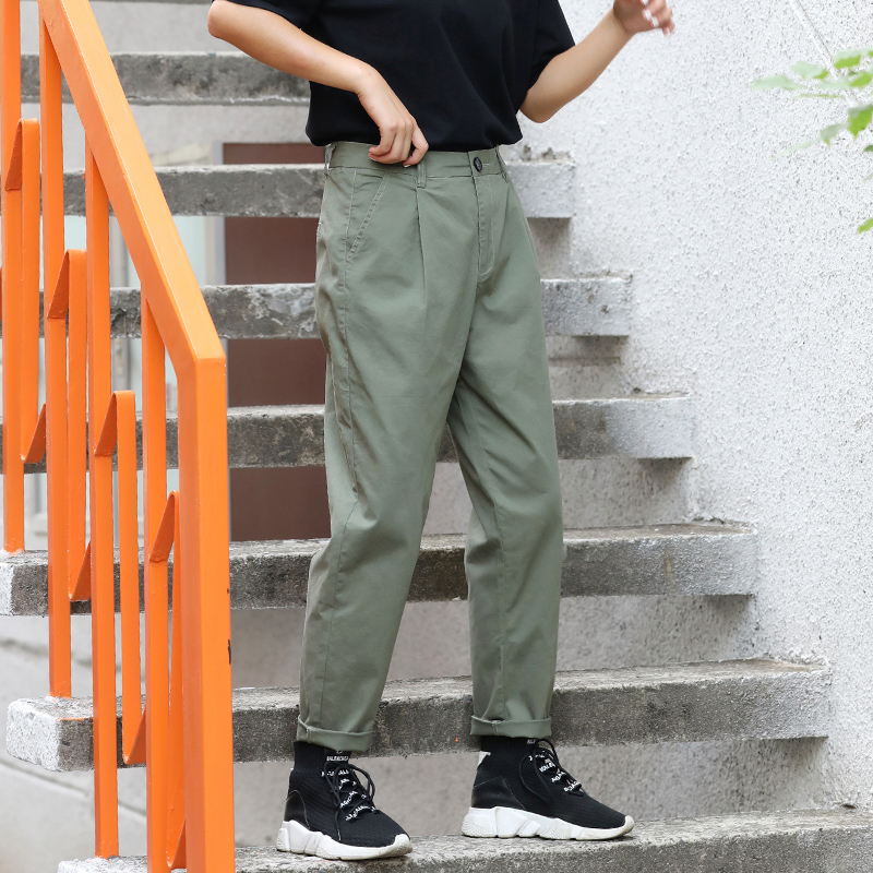高腰的设计,拉长腿部线条,显瘦效果很好,高腰的版型,很显高挑,修身的剪裁,修饰腿部曲线,上身很有范。